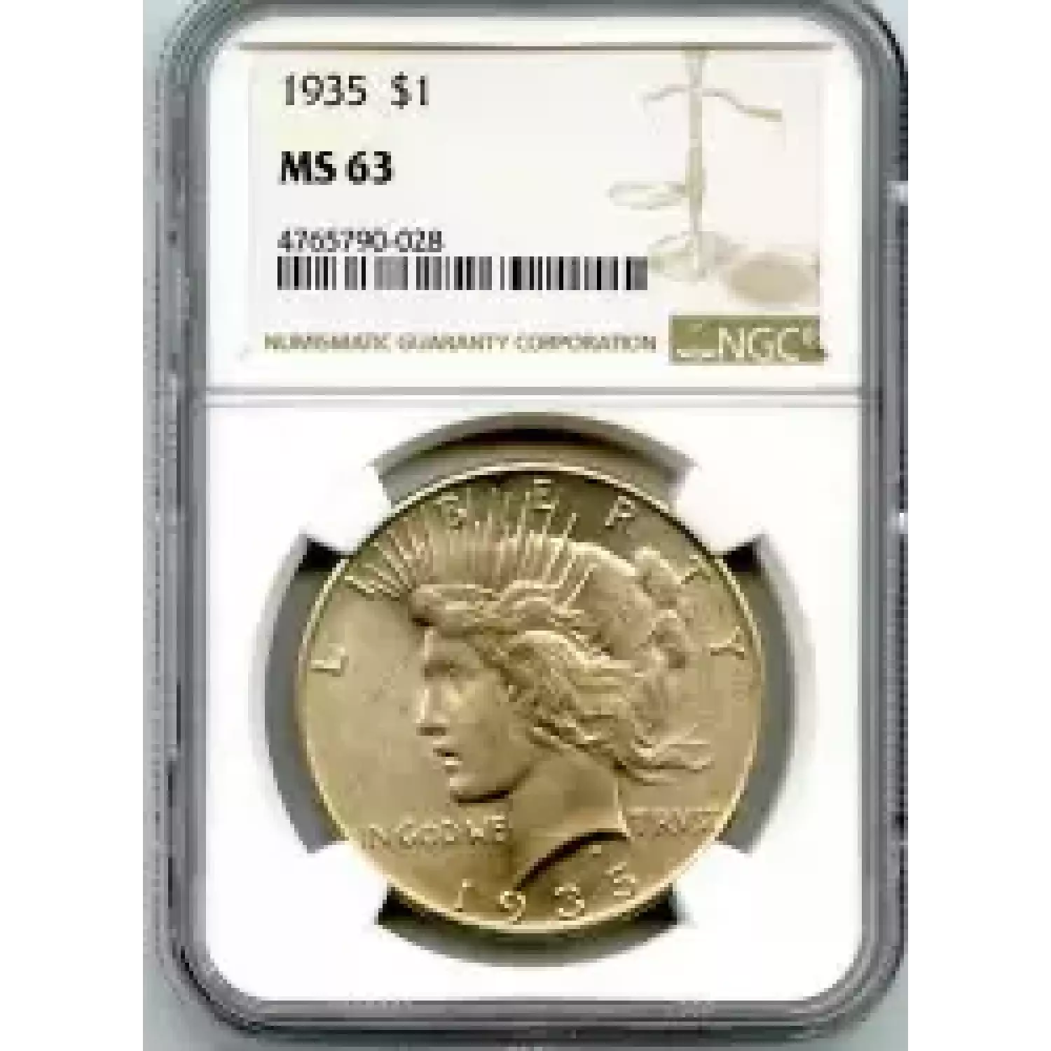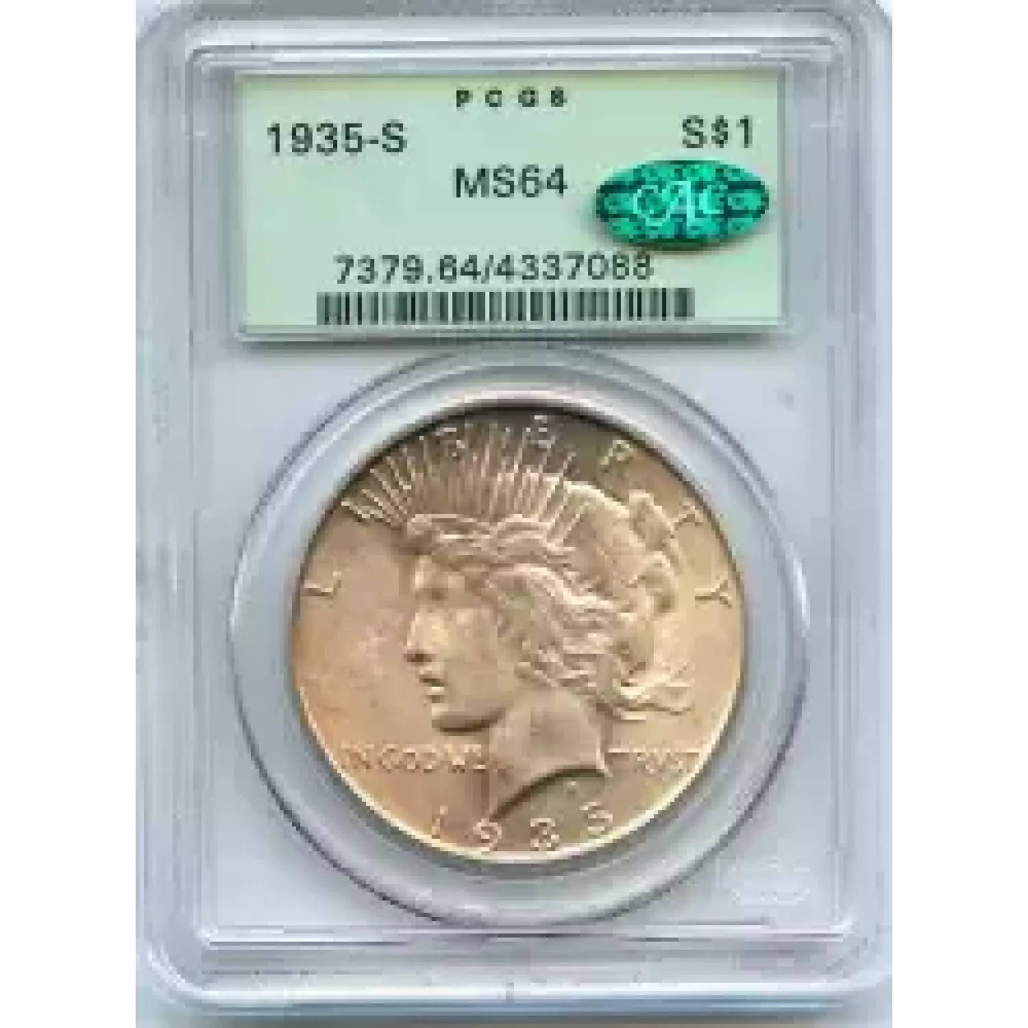 513651 | 1935-MS-64 Peace Silver Dollar PCGS MS-64 CAC | PCGS | MS-64 | Sold: 02/02/2020 | $575 |