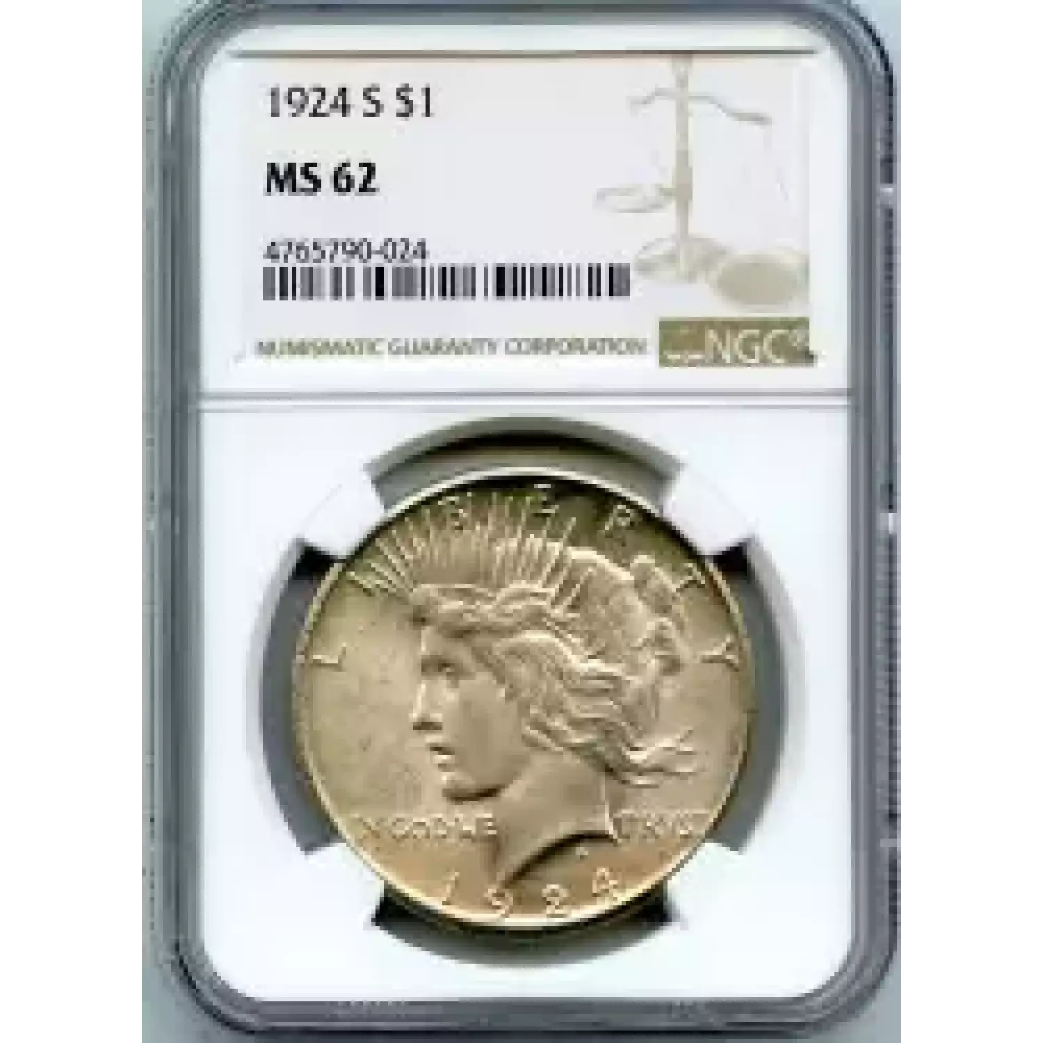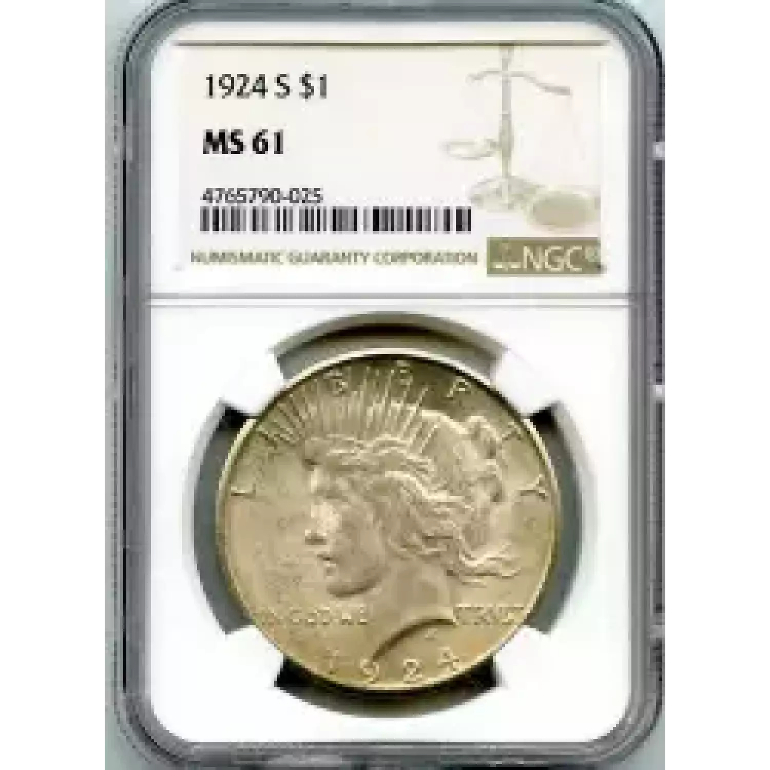 513625 | 1924-MS-62 Peace Silver Dollar NGC MS-62 | NGC | MS-62 | Sold: 04/04/2020 | $265 |