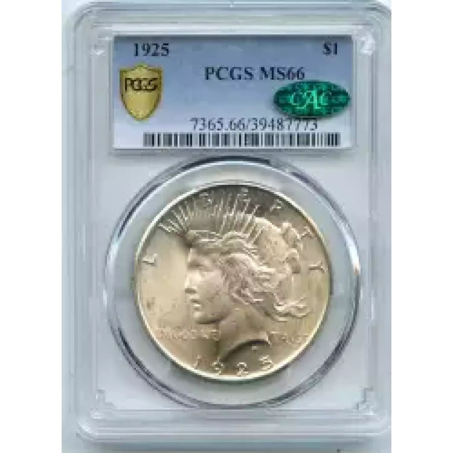 514080 | 1925-MS-66 Peace Silver Dollar PCGS MS-66 CAC | PCGS | MS-66 | Sold: 01/07/2020 | $325 |