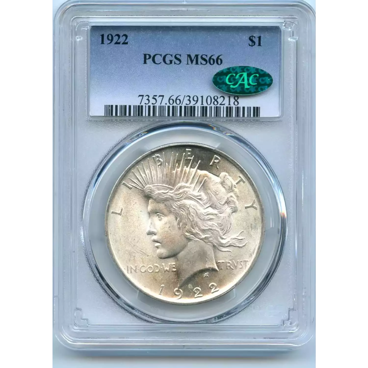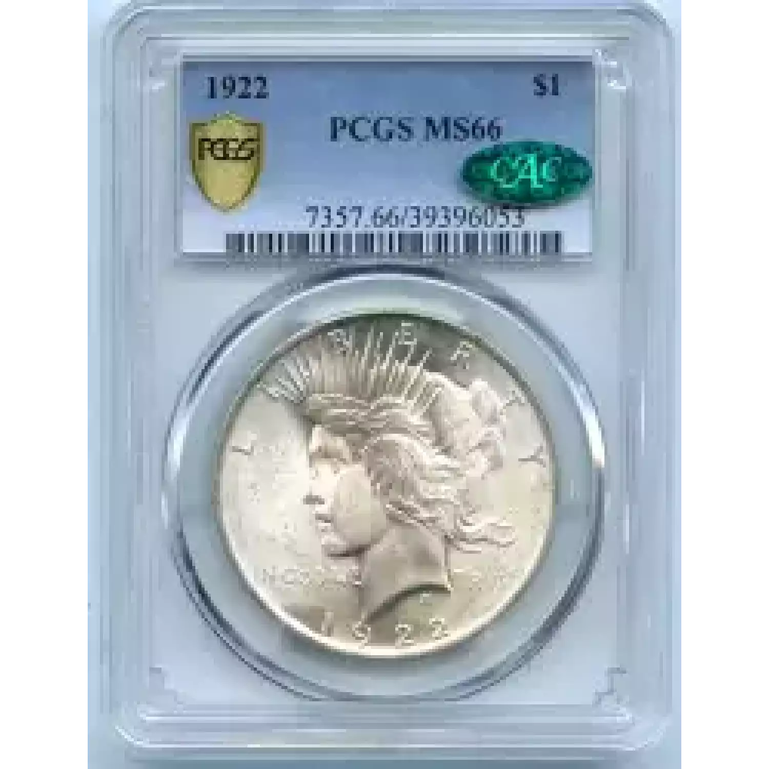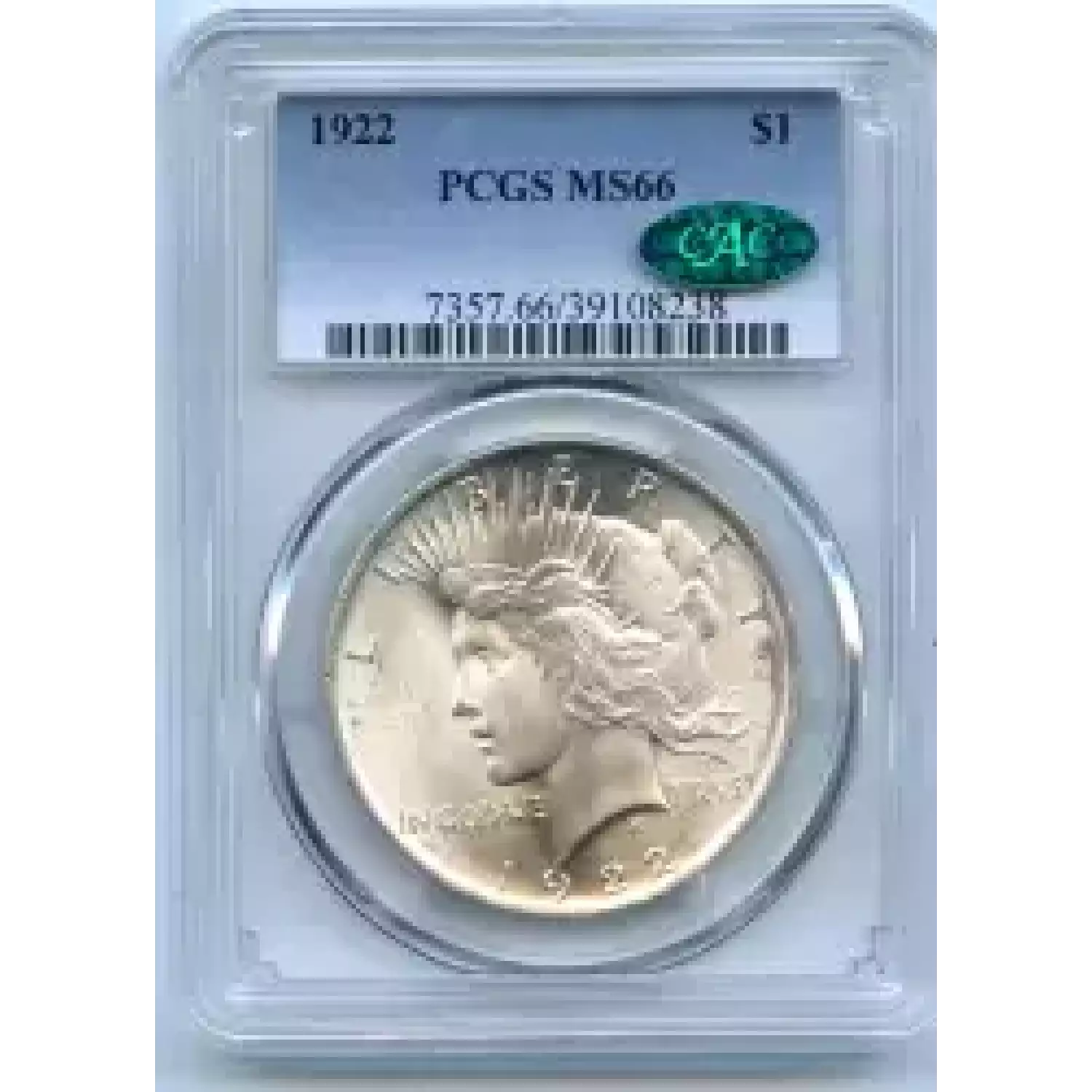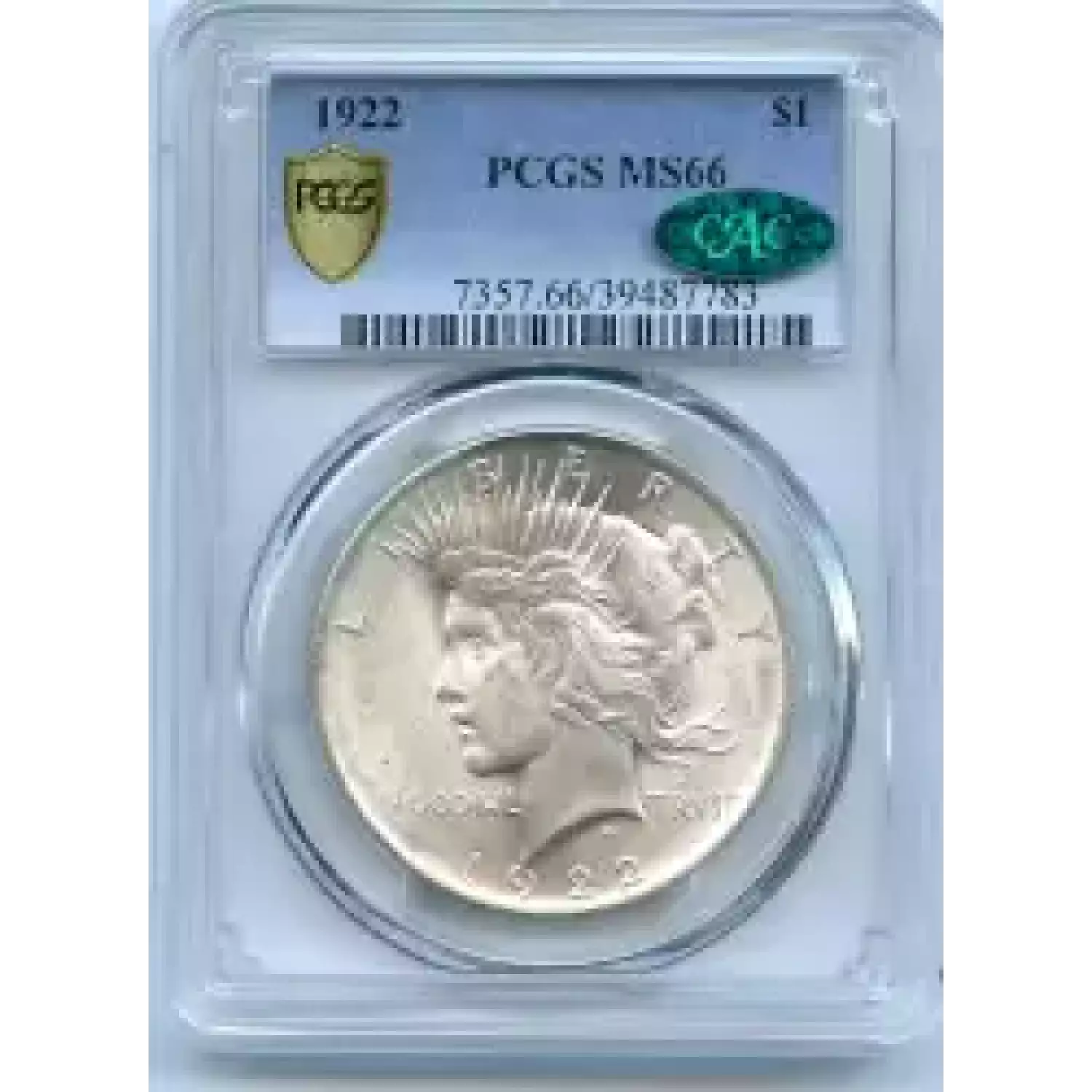 514000 | 1922-MS-66 Peace Silver Dollar PCGS MS-66 CAC | PCGS | MS-66 | Sold: 05/01/2021 | $550 |