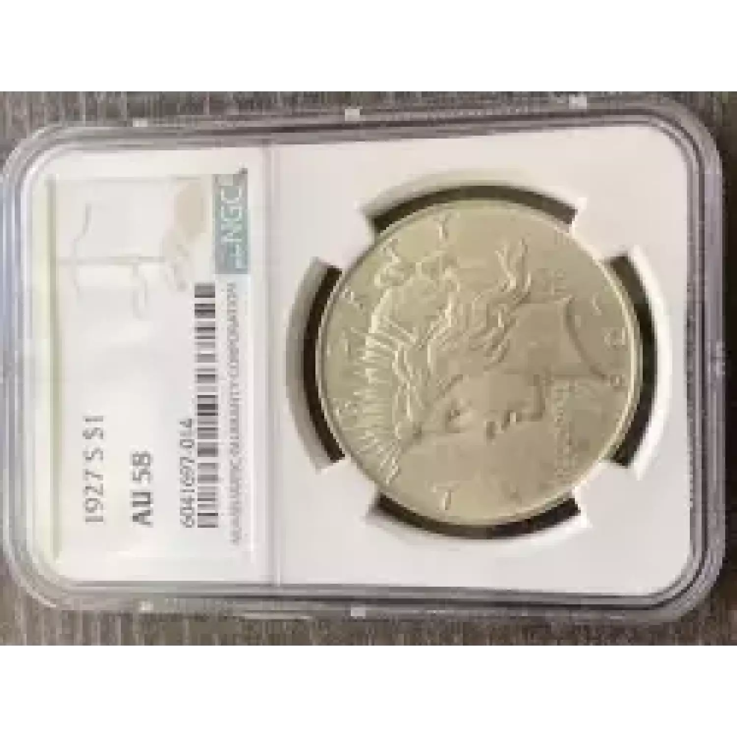 514472 | 1927-AU-58 Peace Silver Dollar NGC AU-58 | NGC | AU-58 | Sold: 14/11/2020 | $160 |