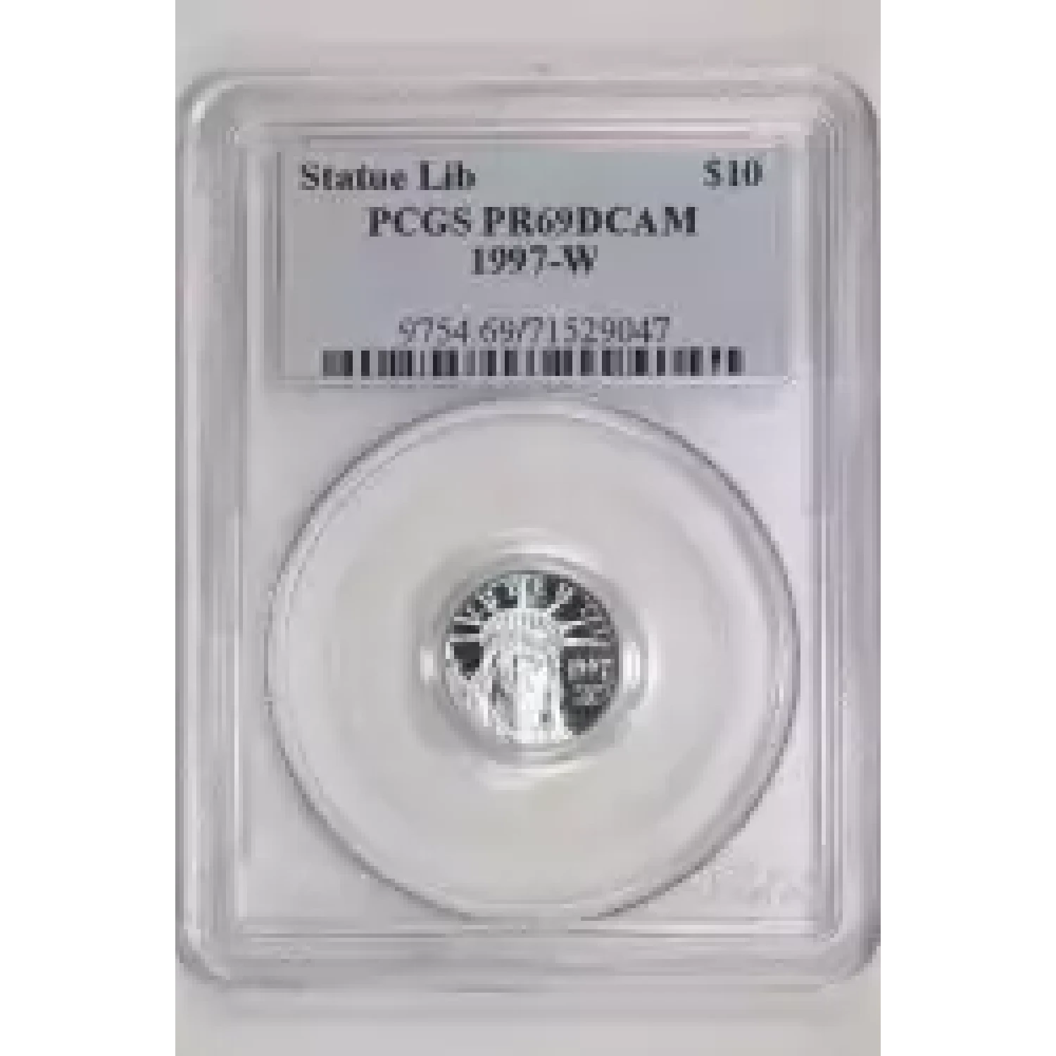 522222 | 1997-W 1/10 oz $10 Platinum Eagle PCGS PR-69 DCAM Statue of Liberty | PCGS | PR-69 | Sold: 29/04/2024 | $250 |