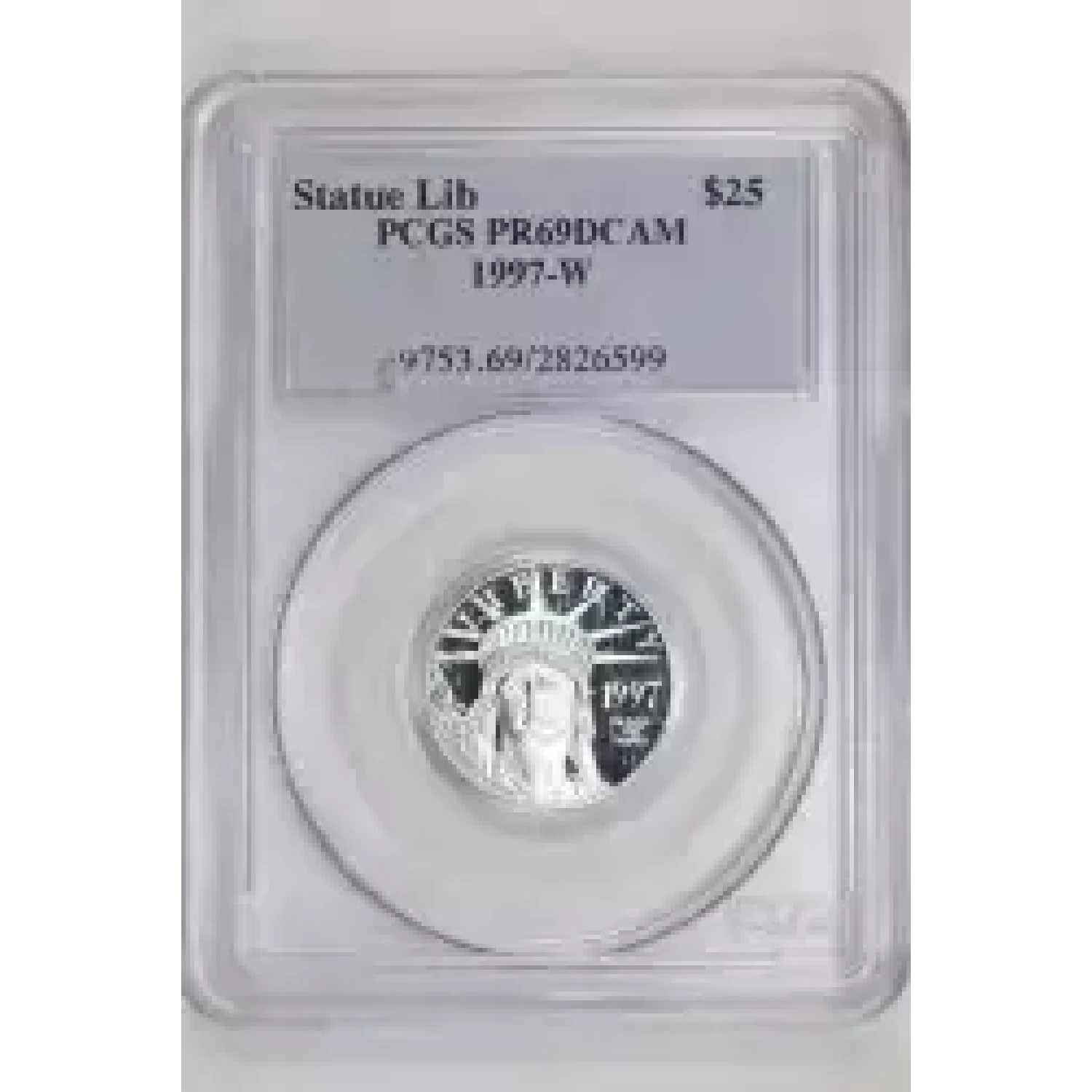 522214 | 1997-W Bullion $25 Platinum Eagle 1/4 oz PCGS PR-69 DCAM Statue of Liberty | PCGS | PR-69 | Sold: 29/04/2024 | $400 |