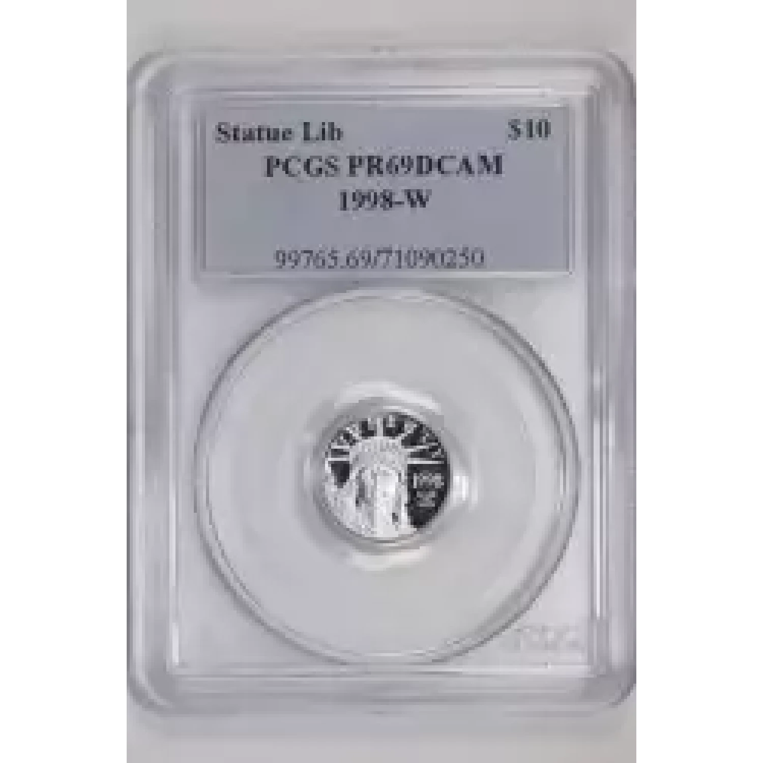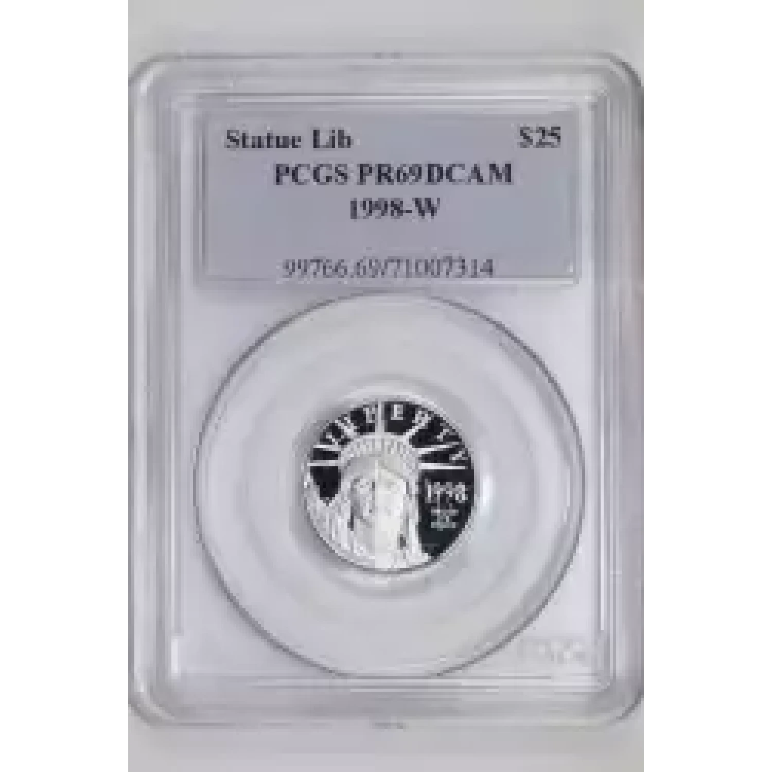 522215 | 1998-W Bullion $25 Platinum Eagle 1/4 oz PCGS PR-69 DCAM Statue of Liberty | PCGS | PR-69 | Sold: 29/04/2024 | $400 |