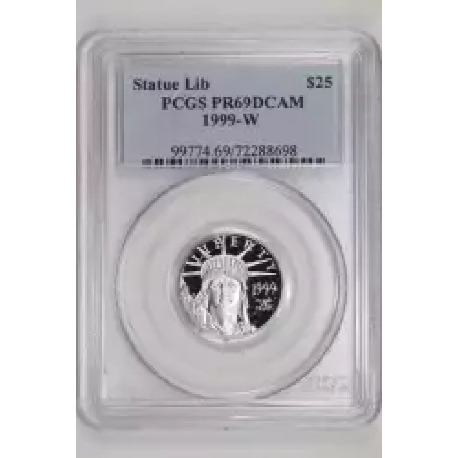 522216 | 1999-W Bullion $25 Platinum Eagle 1/4 oz PCGS PR-69 DCAM Statue of Liberty | PCGS | PR-69 | Sold: 29/04/2024 | $400 |