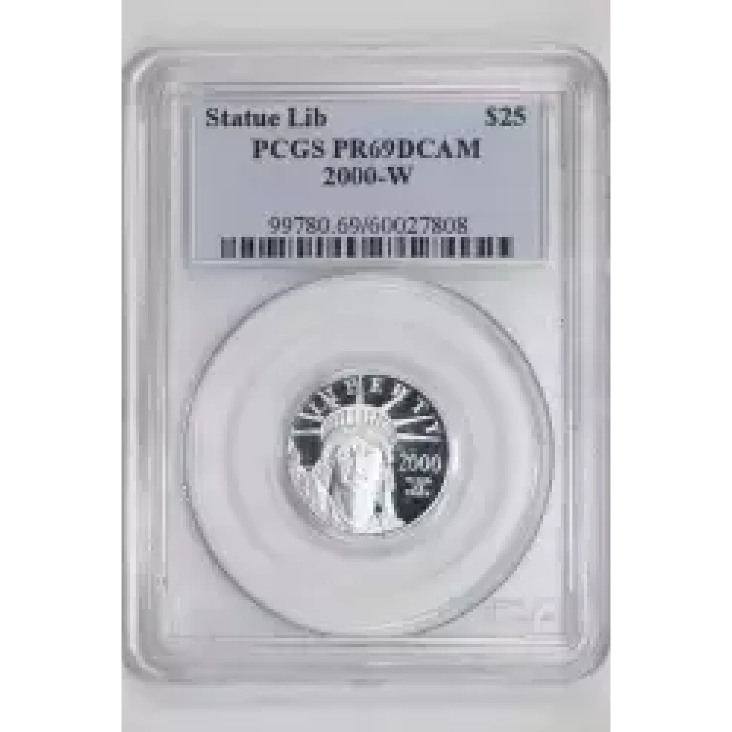 522217 | 2000-W Bullion $25 Platinum Eagle 1/4 oz PCGS PR-69 DCAM Statue of Liberty | PCGS | PR-69 | Sold: 29/04/2024 | $400 |