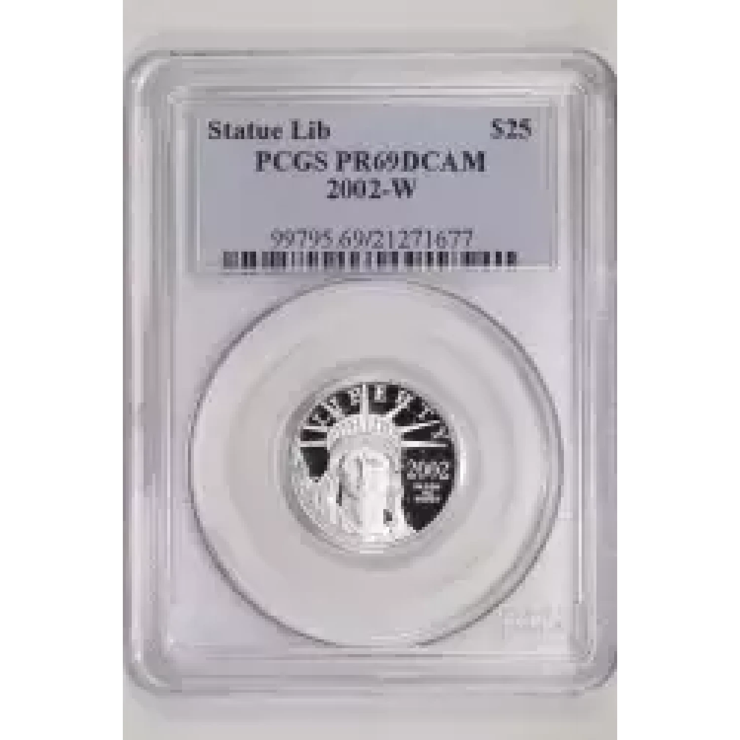 522219 | 2002-W Bullion $25 Platinum Eagle 1/4 oz PCGS PR-69 DCAM Statue of Liberty | PCGS | PR-69 | Sold: 29/04/2024 | $425 |