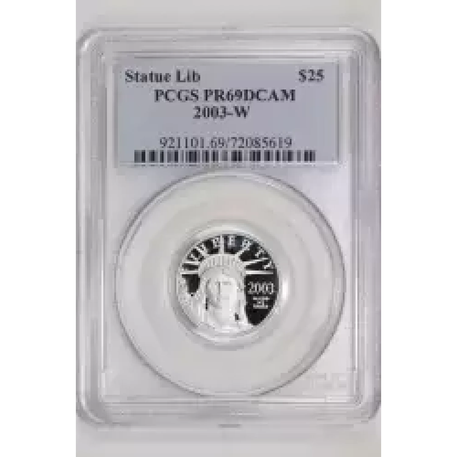 522220 | 2003-W Bullion $25 Platinum Eagle 1/4 oz PCGS PR-69 DCAM Statue of Liberty | PCGS | PR-69 | Sold: 29/04/2024 | $400 |