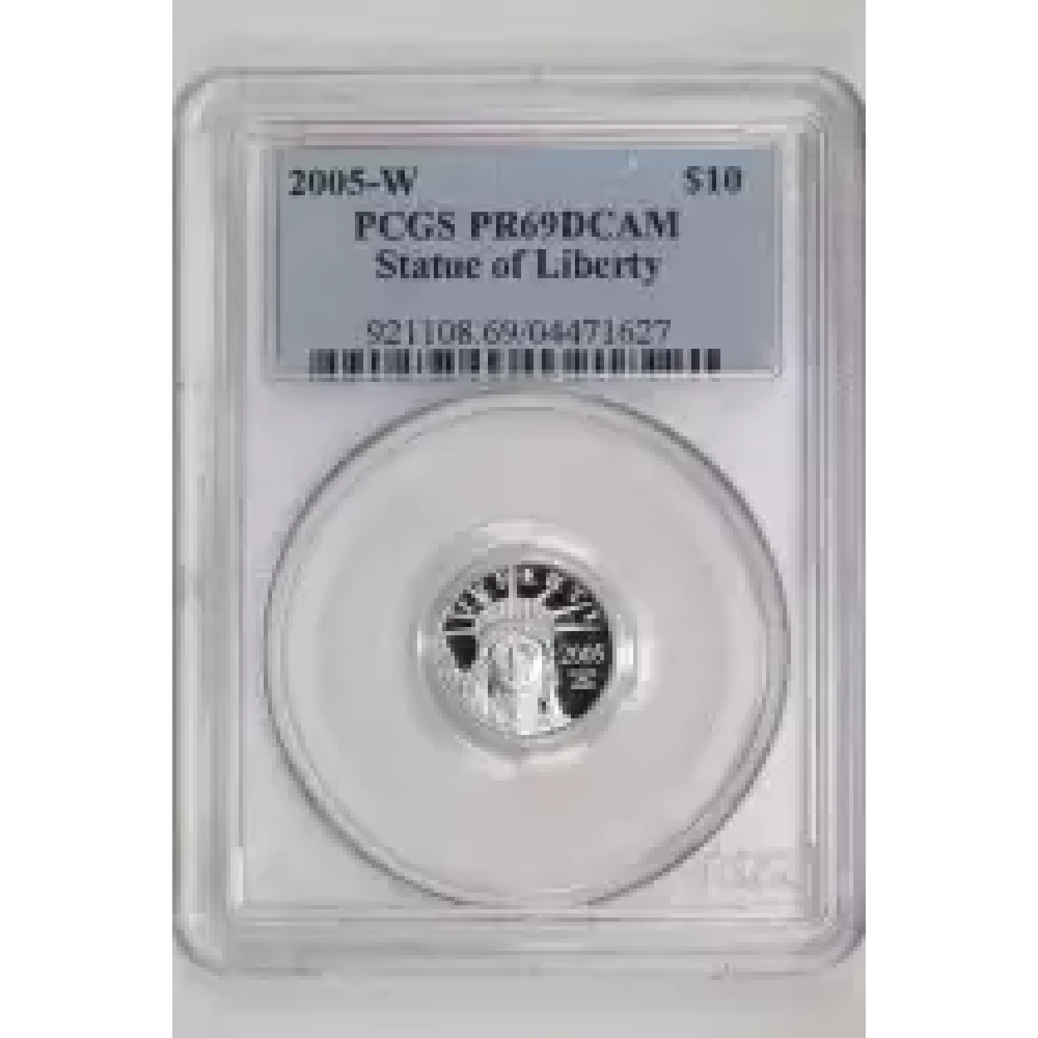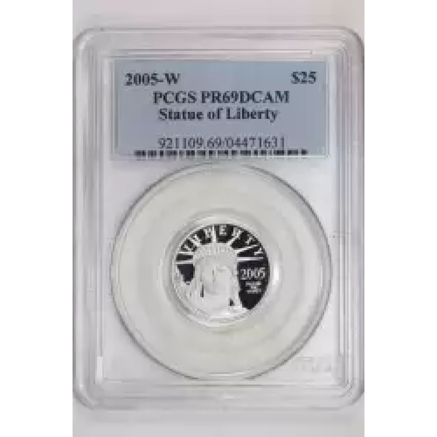 522221 | 2005-W Bullion $25 Platinum Eagle 1/4 oz PCGS PR-69 DCAM Statue of Liberty | PCGS | PR-69 | Sold: 29/04/2024 | $425 |