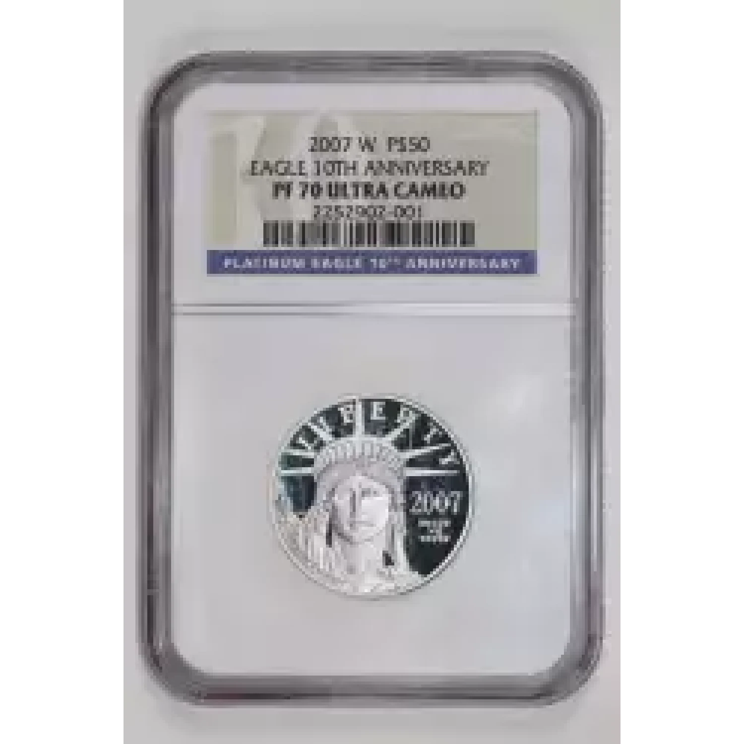 524186 | 2007 Bullion $50 Platinum Eagle 1/2 oz NGC PF-70 W 10TH ANNIVERSARY SET OFFICIAL US MINT SET | NGC | PF-70 | Sold: 12/02/2025 | $850 |