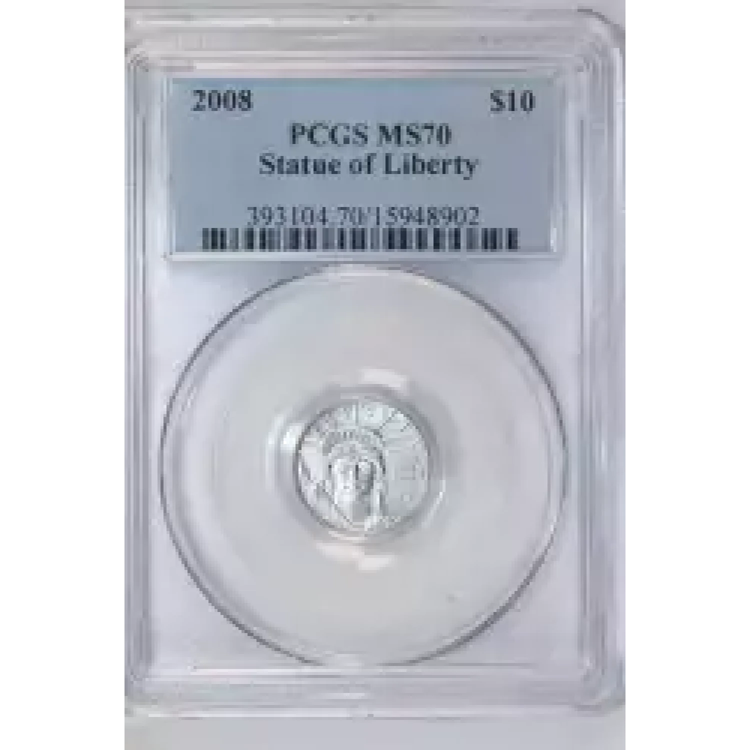 501511 | 2008 1/10 oz $10 Platinum Eagle PCGS MS-70 Statue of Liberty | PCGS | MS-70 | Sold: 07/06/2022 | $250 |