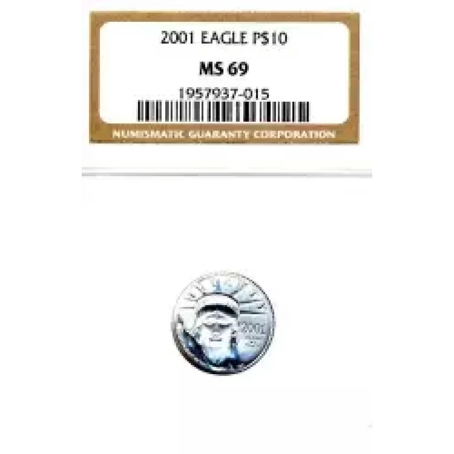 503214 | 2001-MS-69 1/10 oz $10 Platinum Eagle NGC MS-69 | NGC | MS-69 | Sold: 07/01/2006 | $135 |