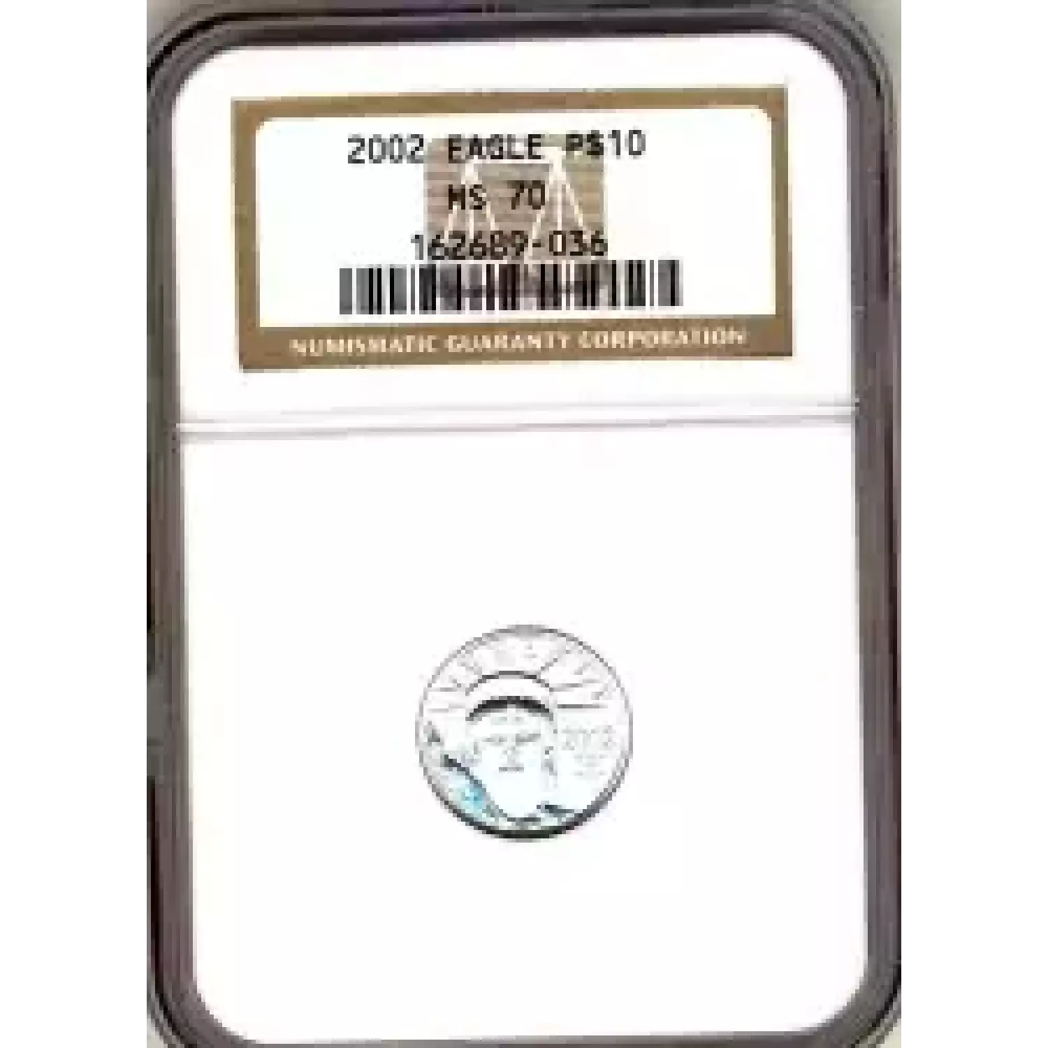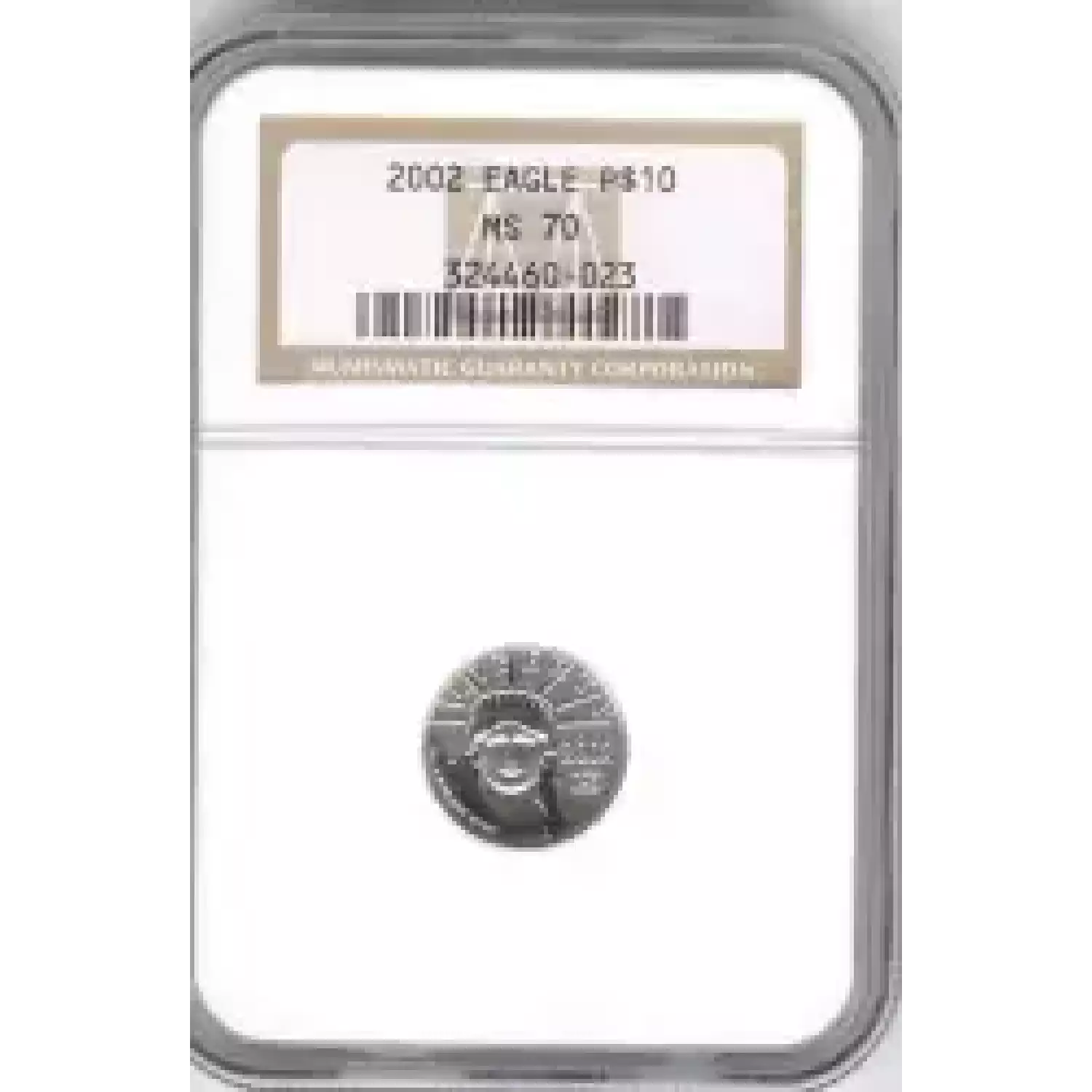 503345 | 2002-MS-70 1/10 oz $10 Platinum Eagle NGC MS-70 | NGC | MS-70 | Sold: 04/03/2006 | $190.22 |