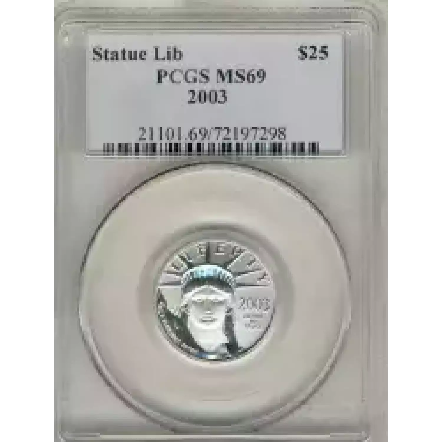 503462 | 2003-MS-69 Bullion $25 Platinum Eagle 1/4 oz PCGS MS-69 | PCGS | MS-69 | Sold: 08/04/2006 | $275 |