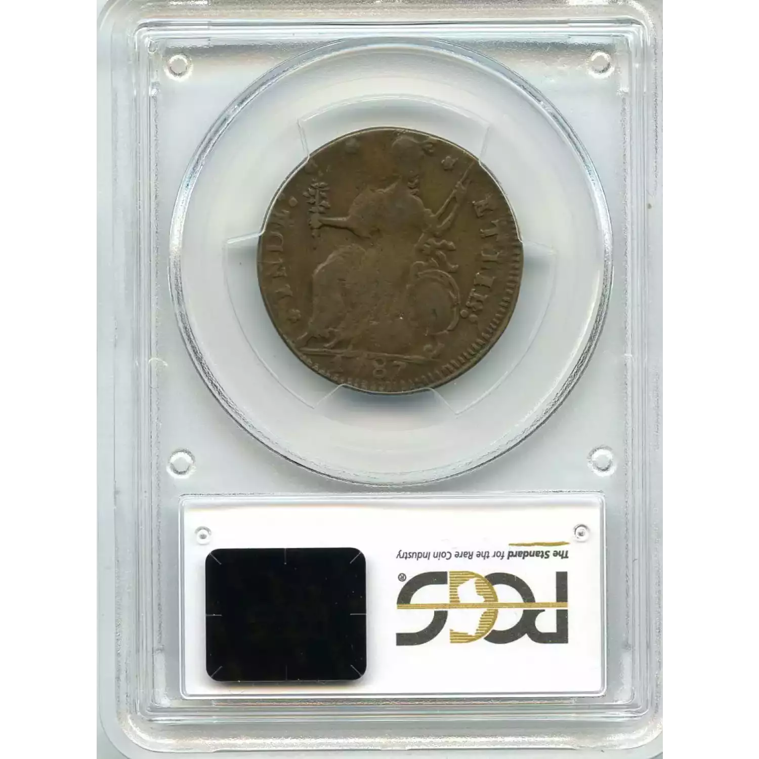 509649 | 1787-VG-8 Post Colonial Issues Unofficial Coppers 1776 PCGS VG-8 | PCGS | VG-8 | Sold: 06/08/2016 | $200 |