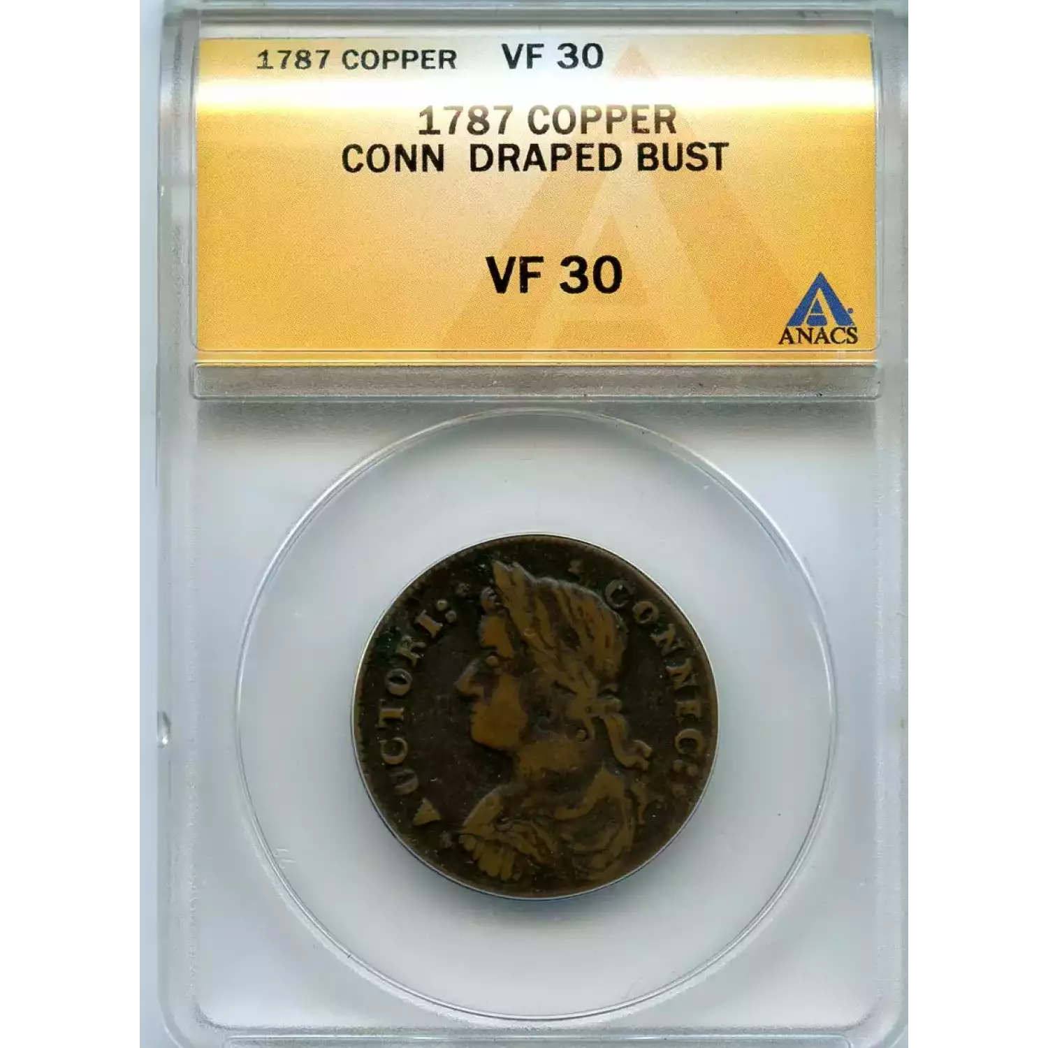 507868 | 1787-VF-30 Post Colonial Issues Connecticut - Copper ANACS VF-30 | ANACS | VF-30 | Sold: 01/03/2016 | $360 |
