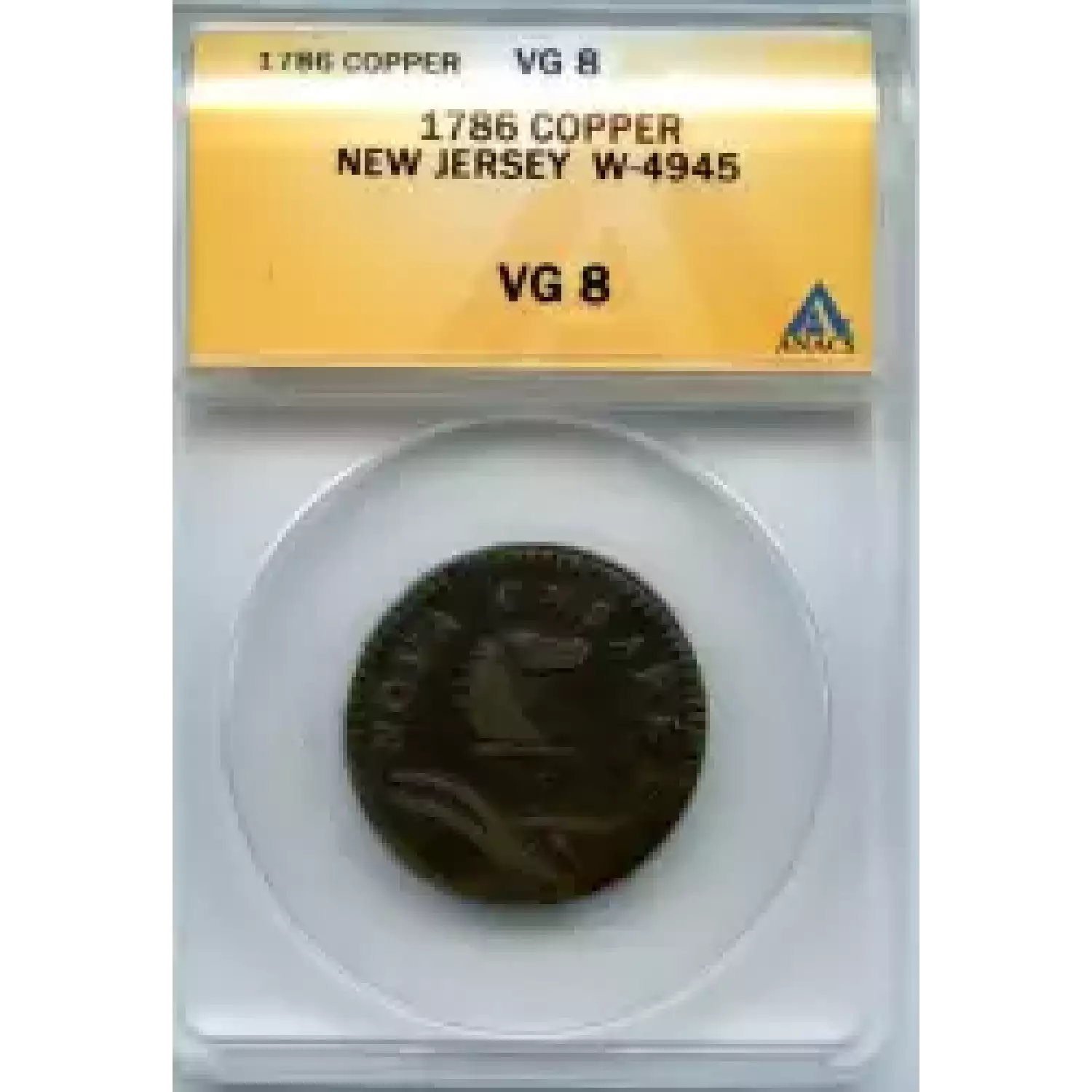 506376 | 1786-VG-8 Post Colonial Issues New Jersey Coppers - Copper ANACS VG-8 | ANACS | VG-8 | Sold: 02/11/2013 | $200 |