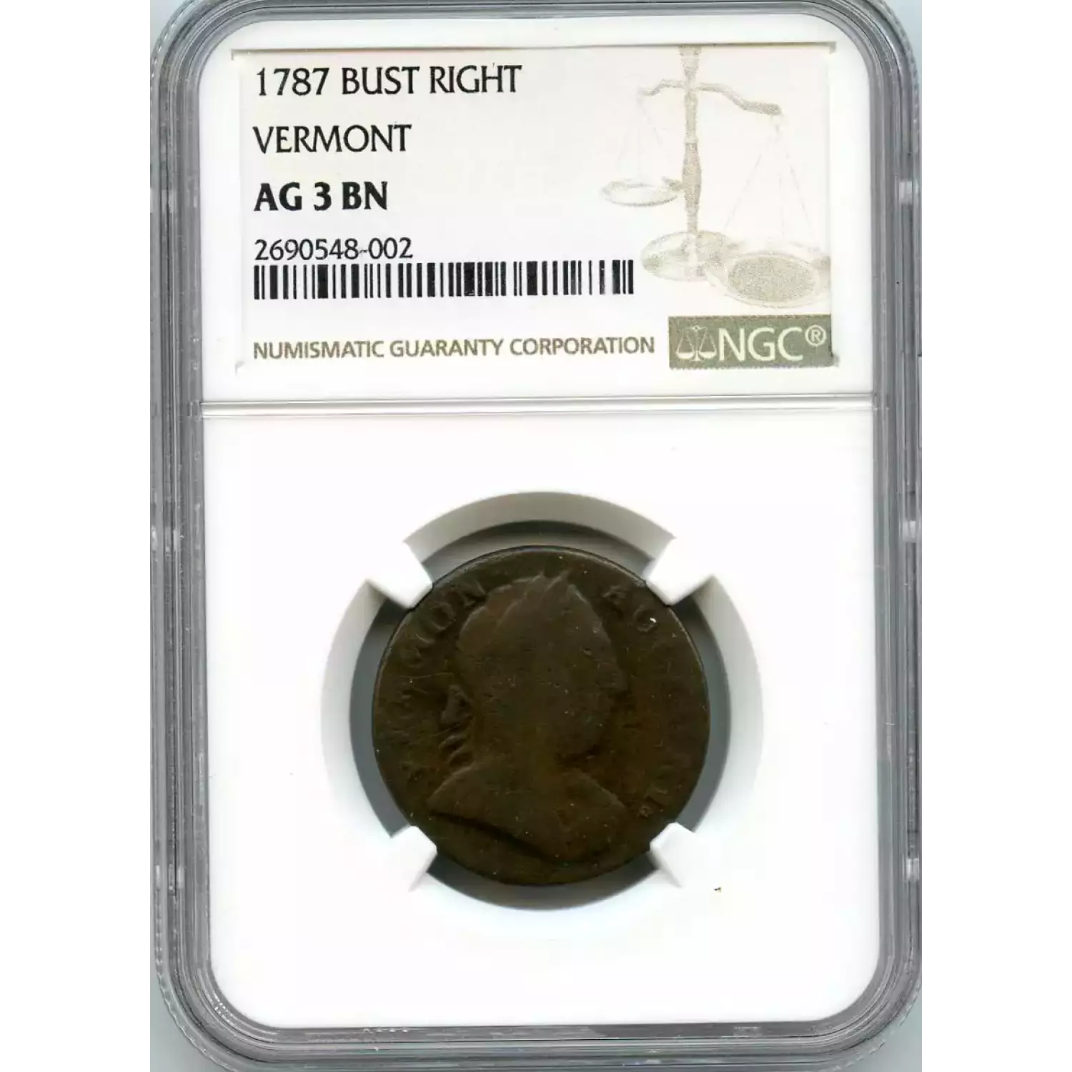 510853 | 1787-AG-3 Post Colonial Issues Vermont - Coppers NGC AG-3 BN | NGC | AG-3 | Sold: 10/03/2019 | $157.50 |