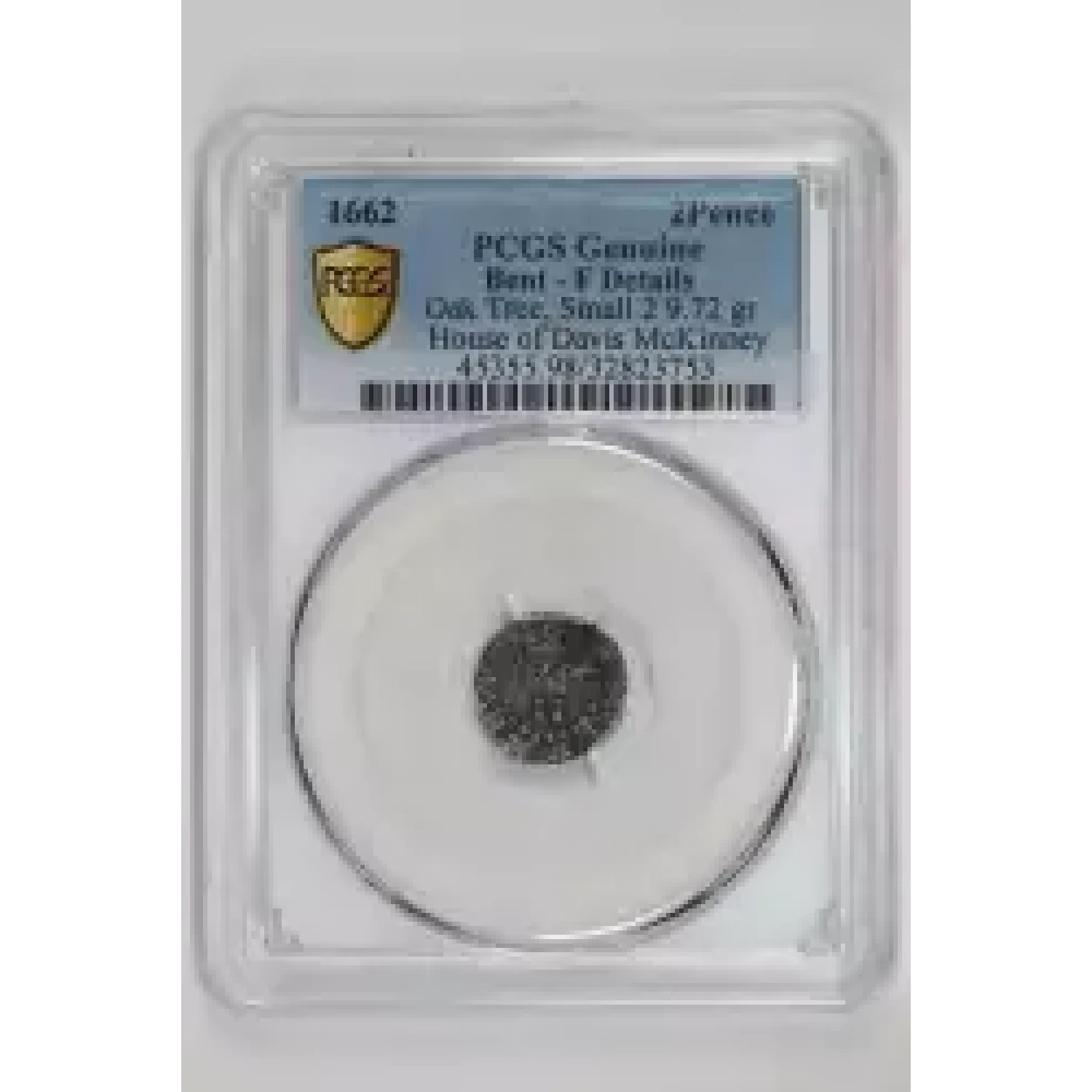524176 | 1662 Colonial Sommer Islands 2 Pence PCGS Genuine - Fine Details (98 - Damage) Oak Tree, Small 2 | PCGS | Genuine - Fine Details (98 - Damage) | Sold: 27/02/2025 | $1,950 |
