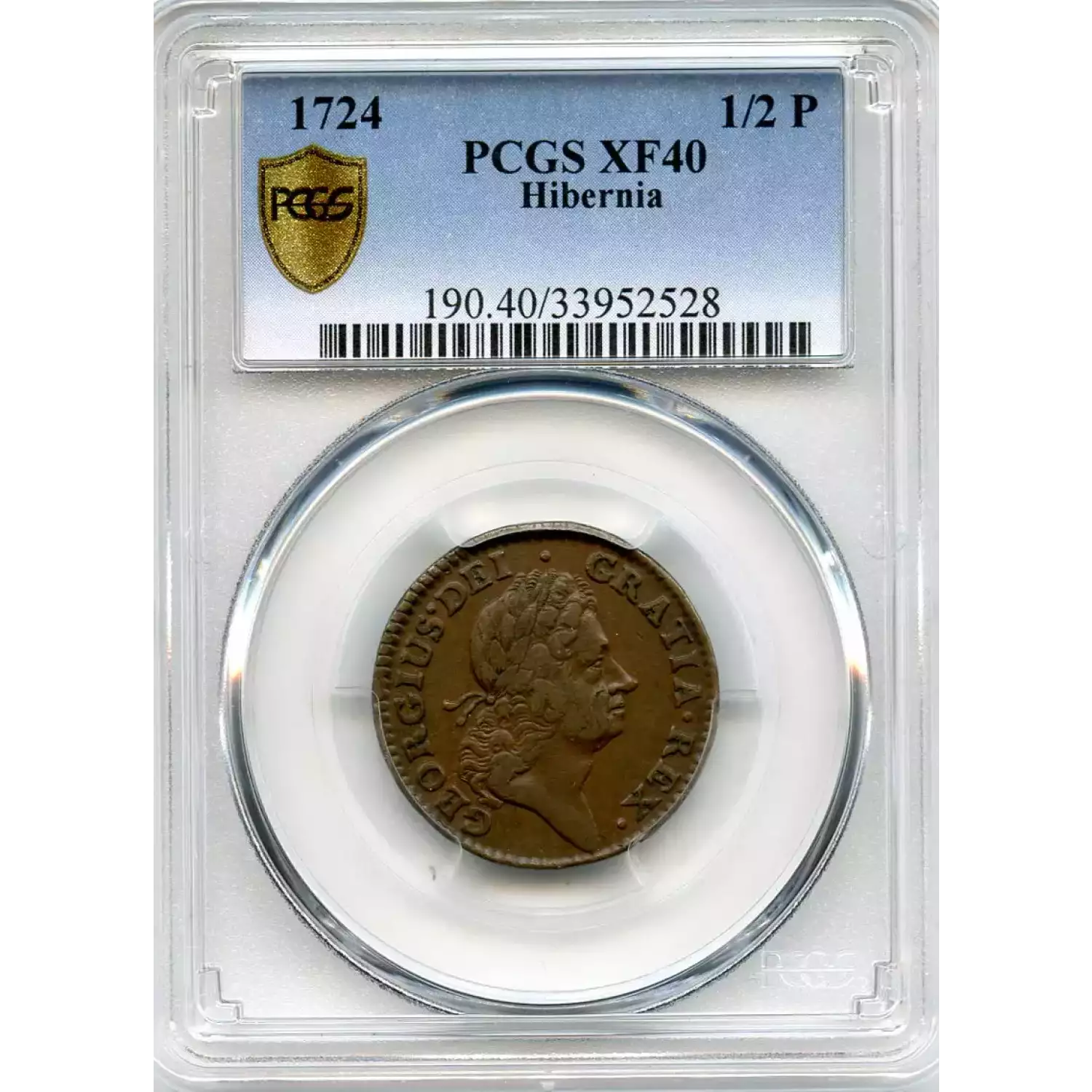 509531 | 1724-XF-40 Colonial Wood’s Hibernia Halfpenny PCGS XF-40 | PCGS | XF-40 | Sold: 21/07/2016 | $400 |