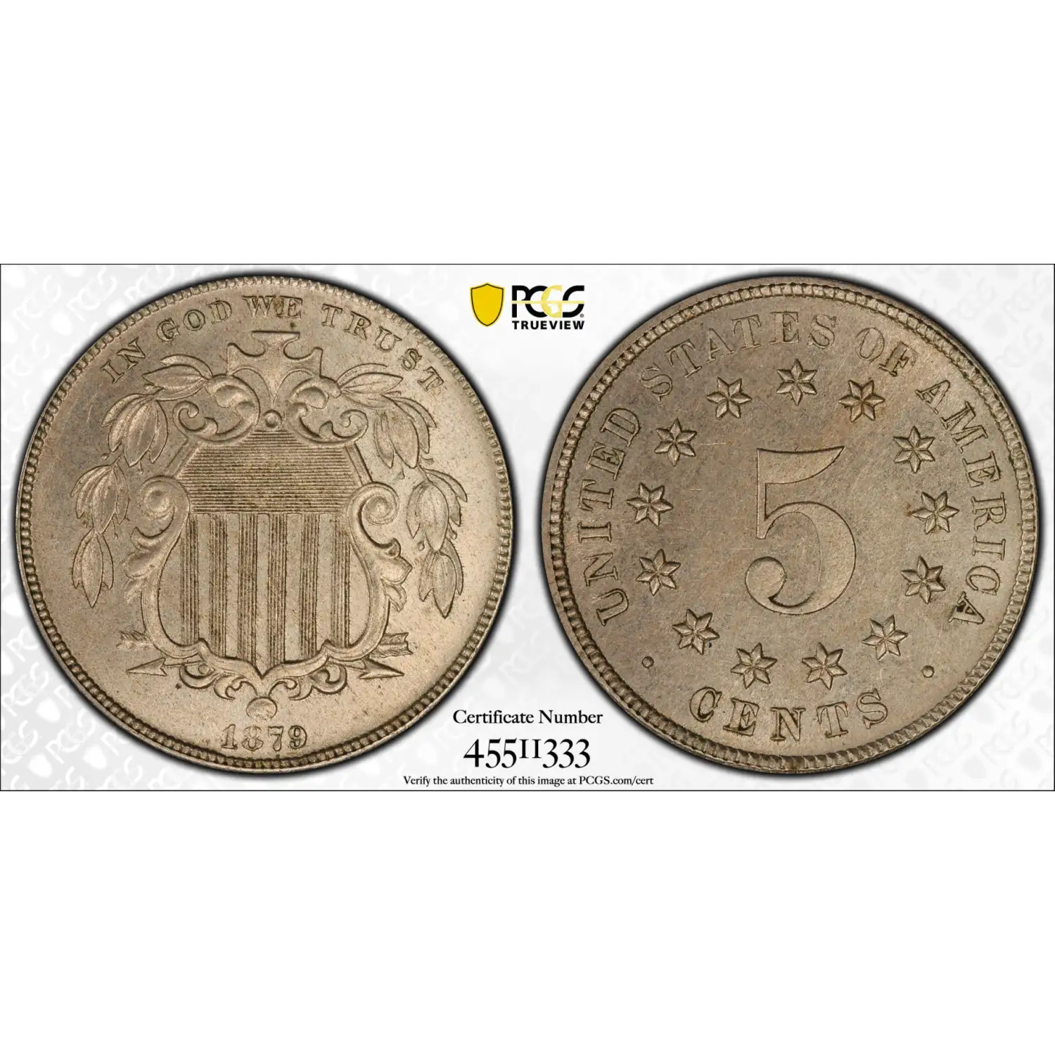 512591 | 1878-PR-65 Nickel Shield NGC PR-65 | NGC | PR-65 | Sold: 05/02/2019 | $1,175 |