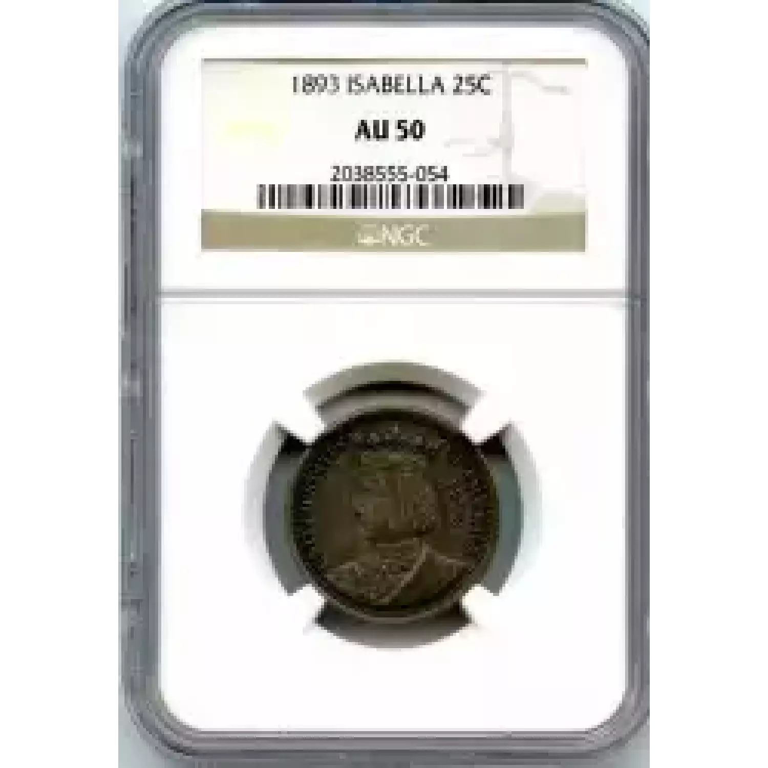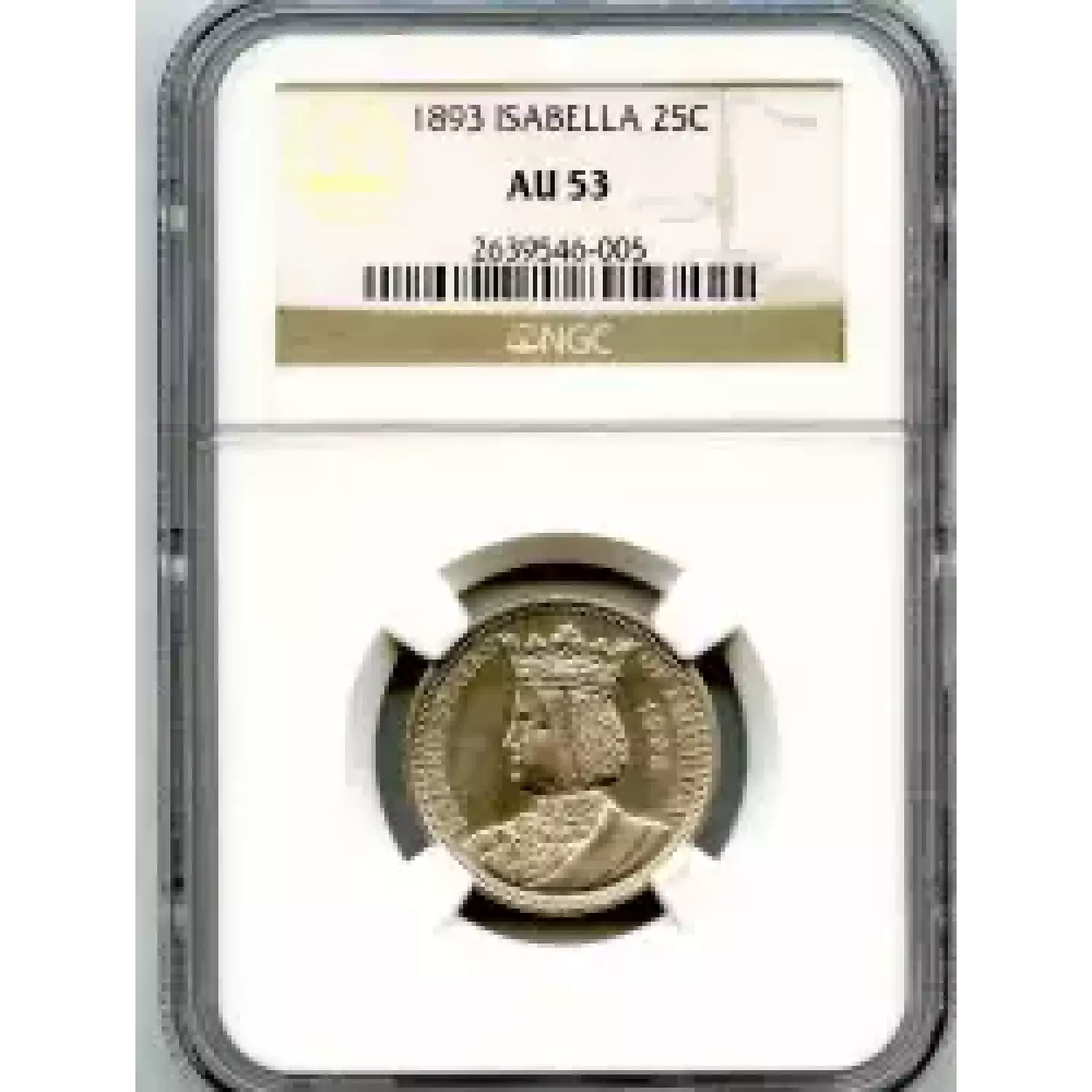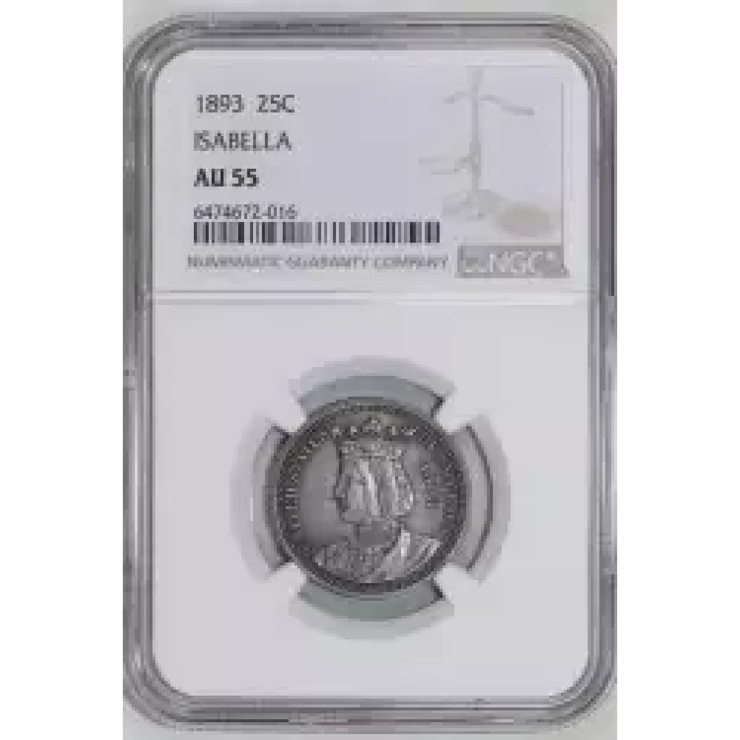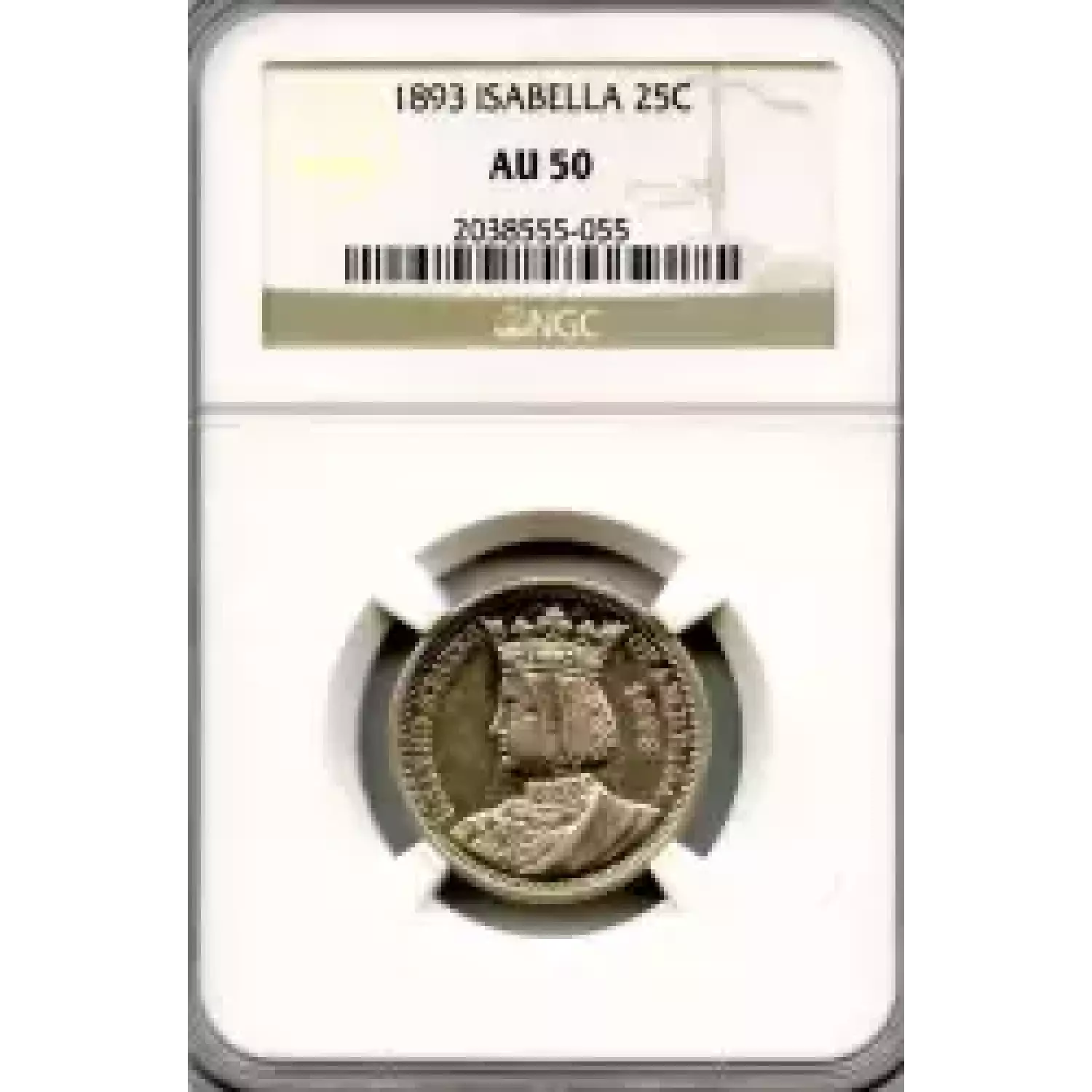 515281 | 1893 Classic Commemorative World's Columbian Exposition, Isabella Quarter NGC AU-55 ISABELLA | NGC | AU-55 | Sold: 04/10/2022 | $330 |