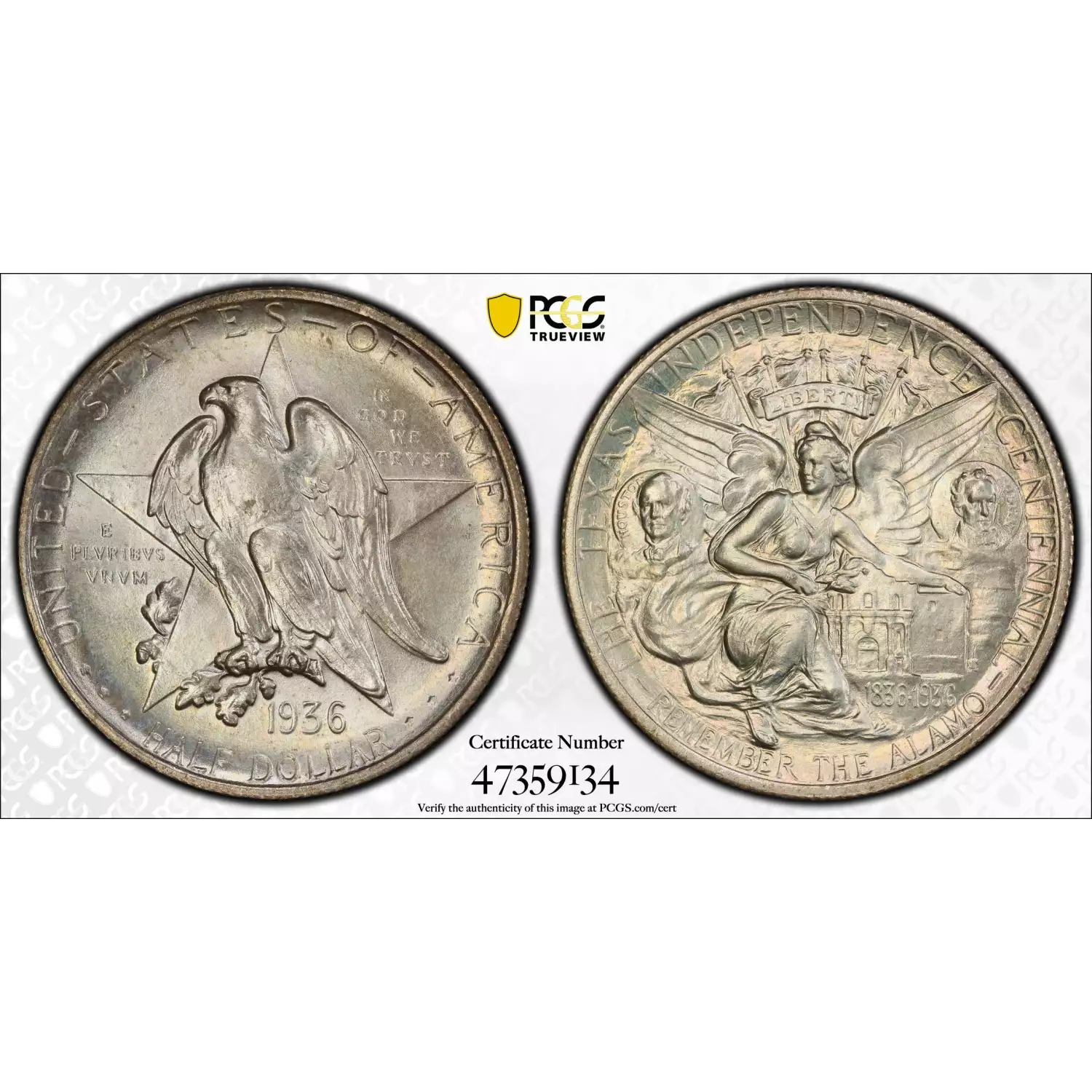 500628 | 1936 Classic Commemorative Texas Independence Centennial PCGS MS-66 Texas | PCGS | MS-66 | Sold: 12/05/2022 | $315 |