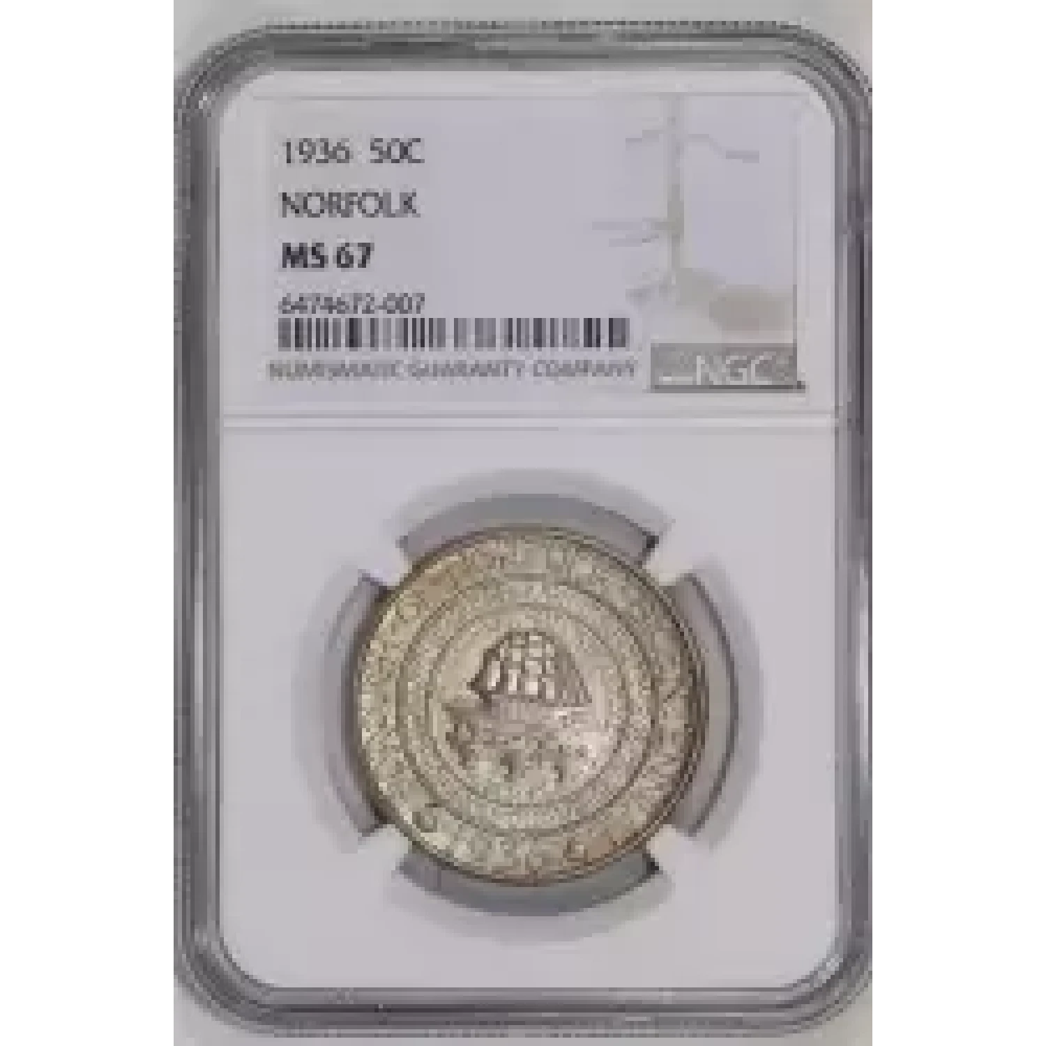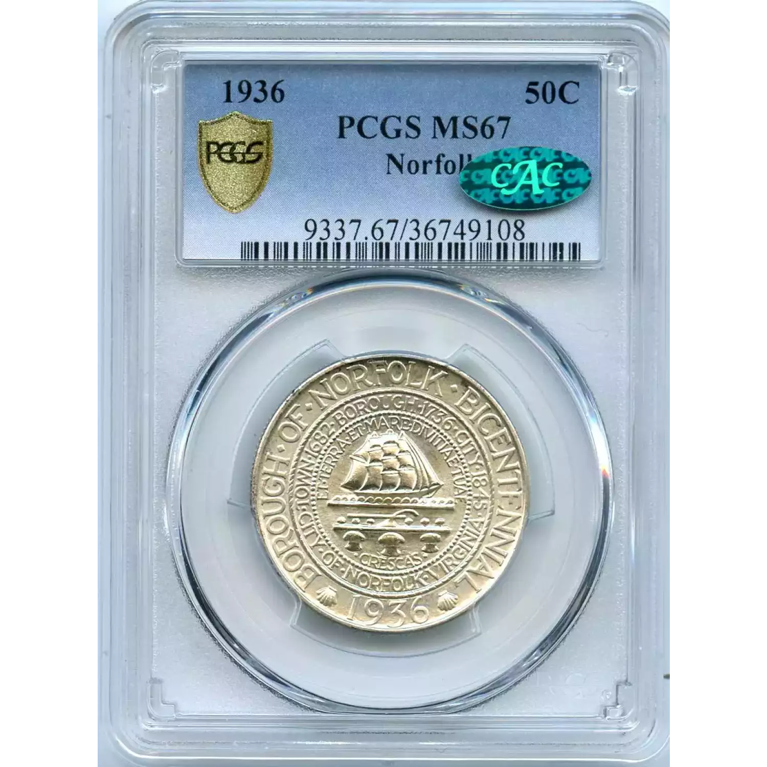 512839 | 1936-MS-67 Classic Commemorative Norfolk, Virginia, Bicentennial PCGS MS-67 CAC | PCGS | MS-67 | Sold: 27/05/2019 | $340 |