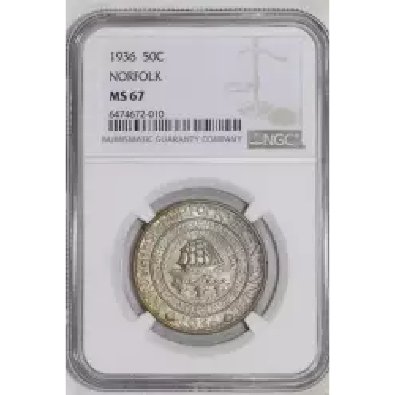 515266 | 1936 Classic Commemorative Norfolk, Virginia, Bicentennial NGC MS-67 NORFOLK | NGC | MS-67 | Sold: 06/10/2023 | $550 |