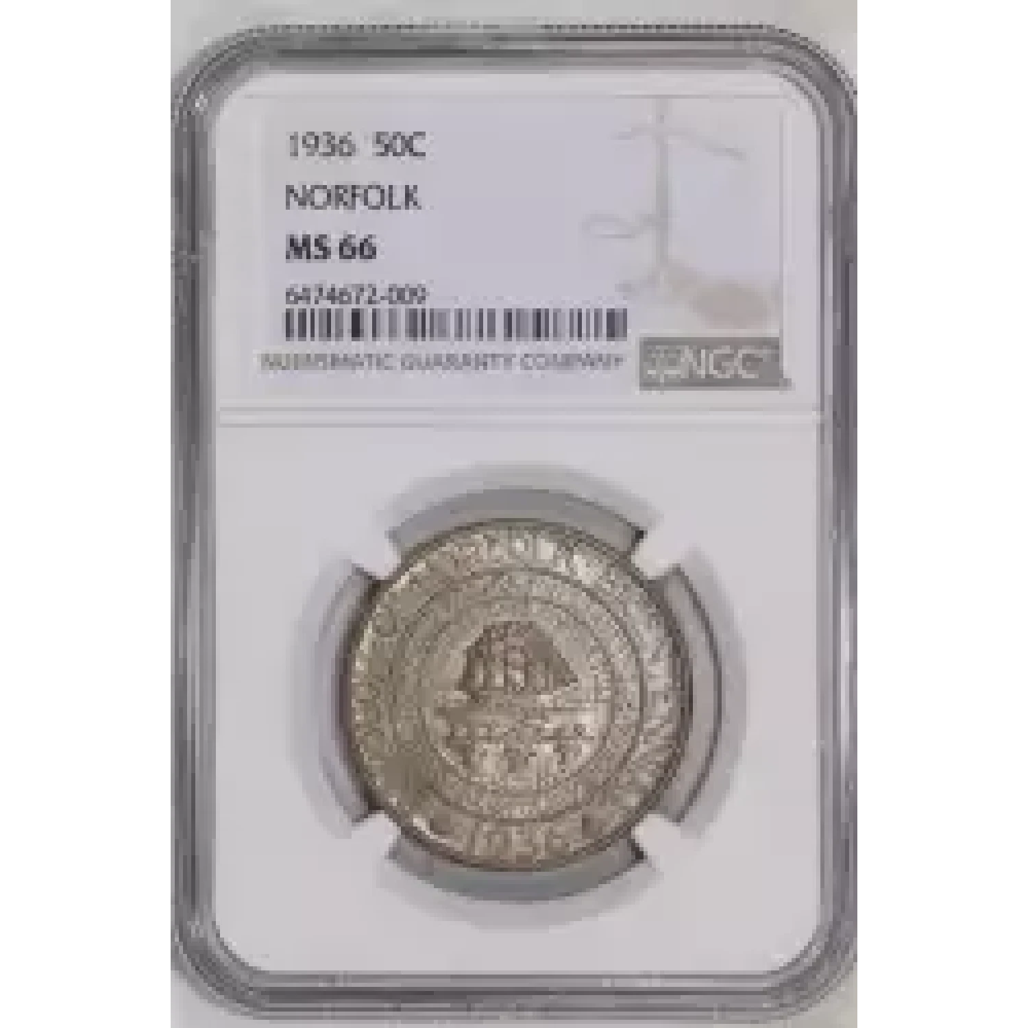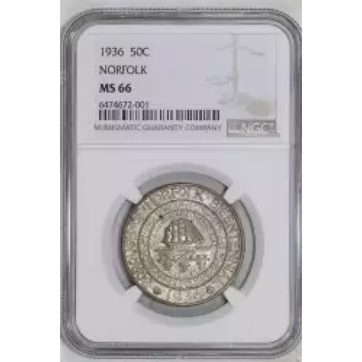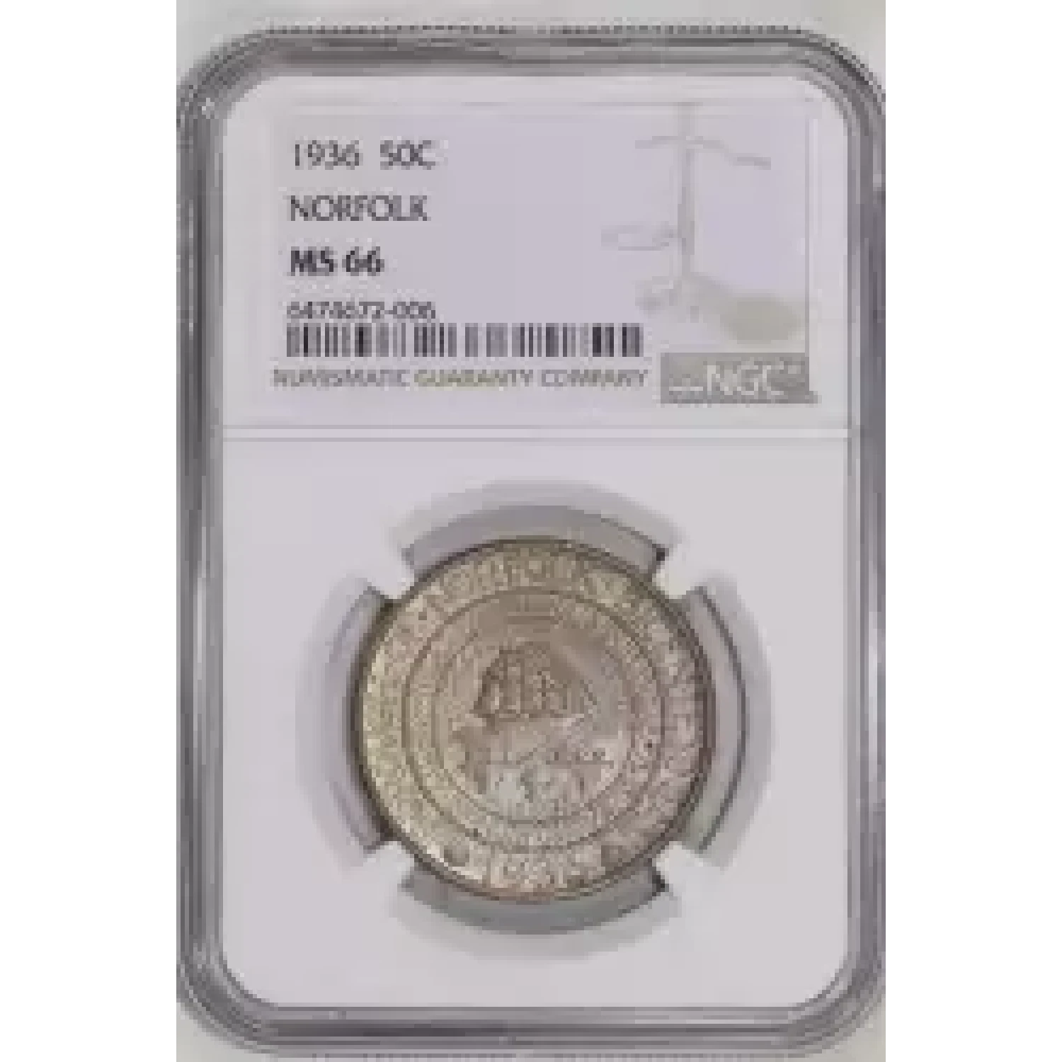 519802 | 1936 Classic Commemorative Norfolk, Virginia, Bicentennial PCGS MS-66 Norfolk | PCGS | MS-66 | Sold: 10/11/2023 | $450 |