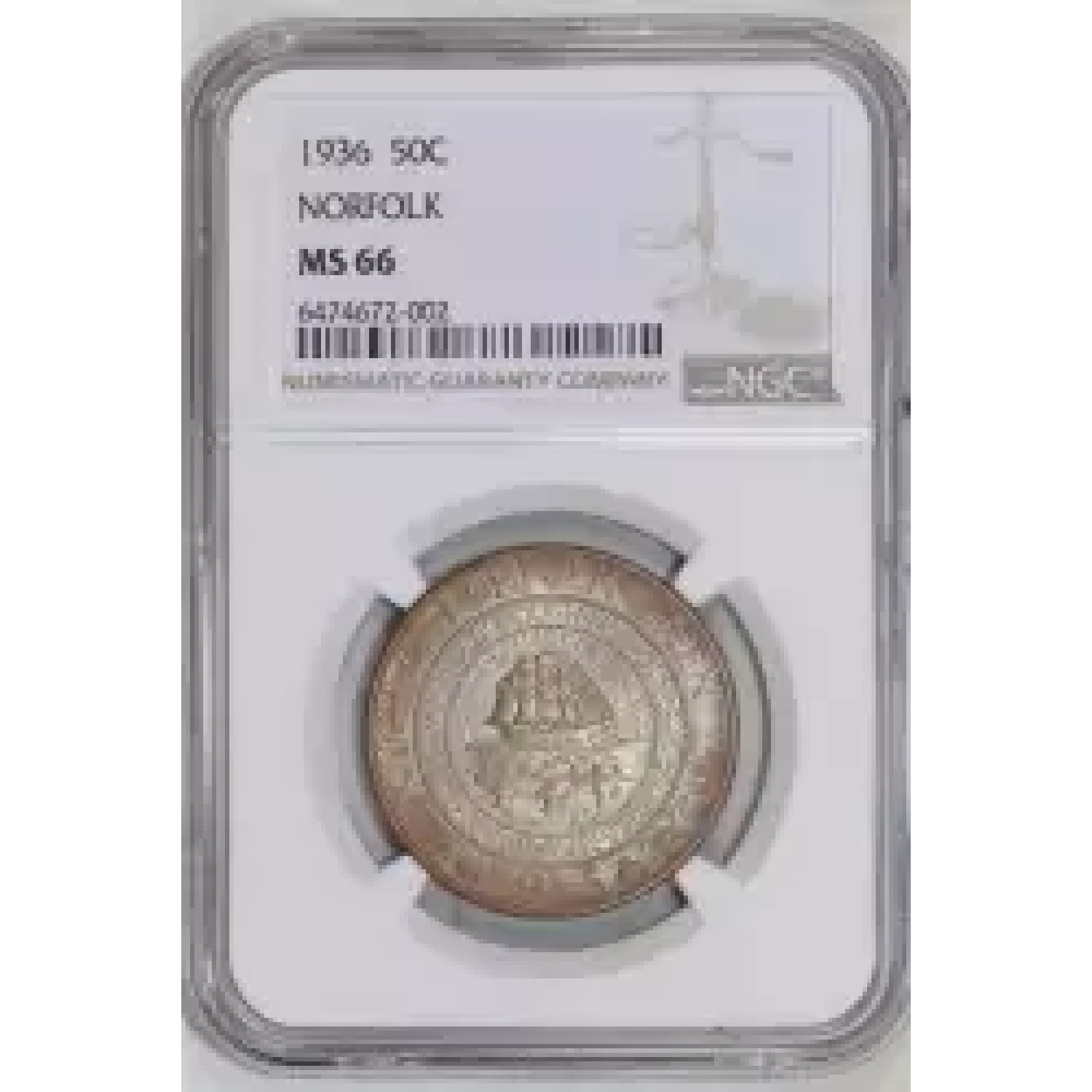 515271 | 1936 Classic Commemorative Norfolk, Virginia, Bicentennial NGC MS-66 NORFOLK | NGC | MS-66 | Sold: 16/08/2023 | $400 |
