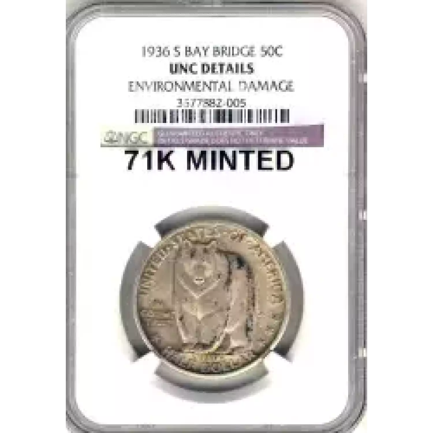 500618 | 1936 Classic Commemorative San Francisco - Oakland Bay Bridge Opening NGC MS-64 BAY BRIDGE | NGC | MS-64 | Sold: 09/03/2022 | $200 |