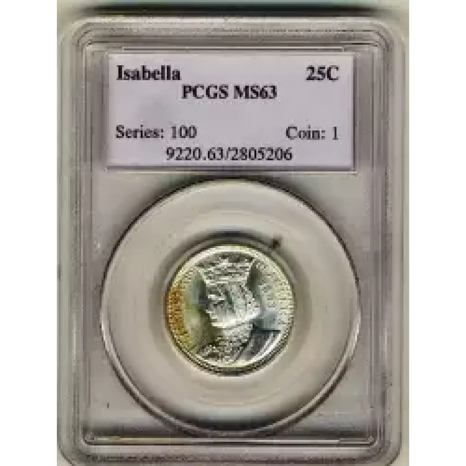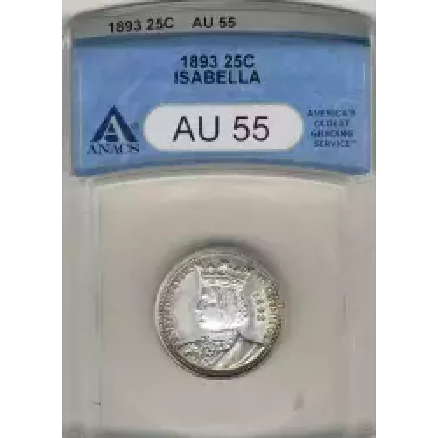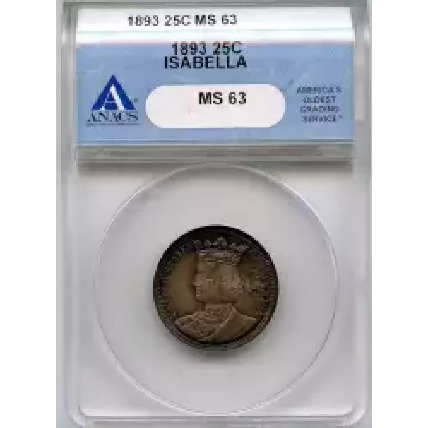 509530 | 1893-MS-63 Classic Commemorative World's Columbian Exposition, Isabella Quarter ANACS MS-63 | ANACS | MS-63 | Sold: 13/06/2016 | $475 |