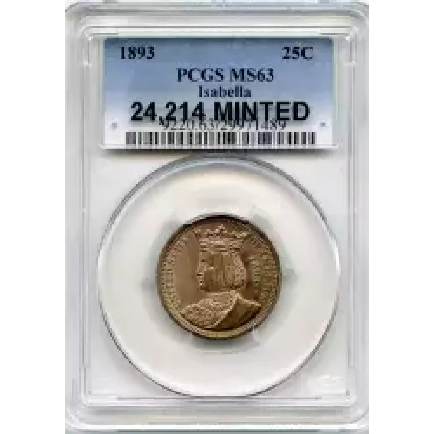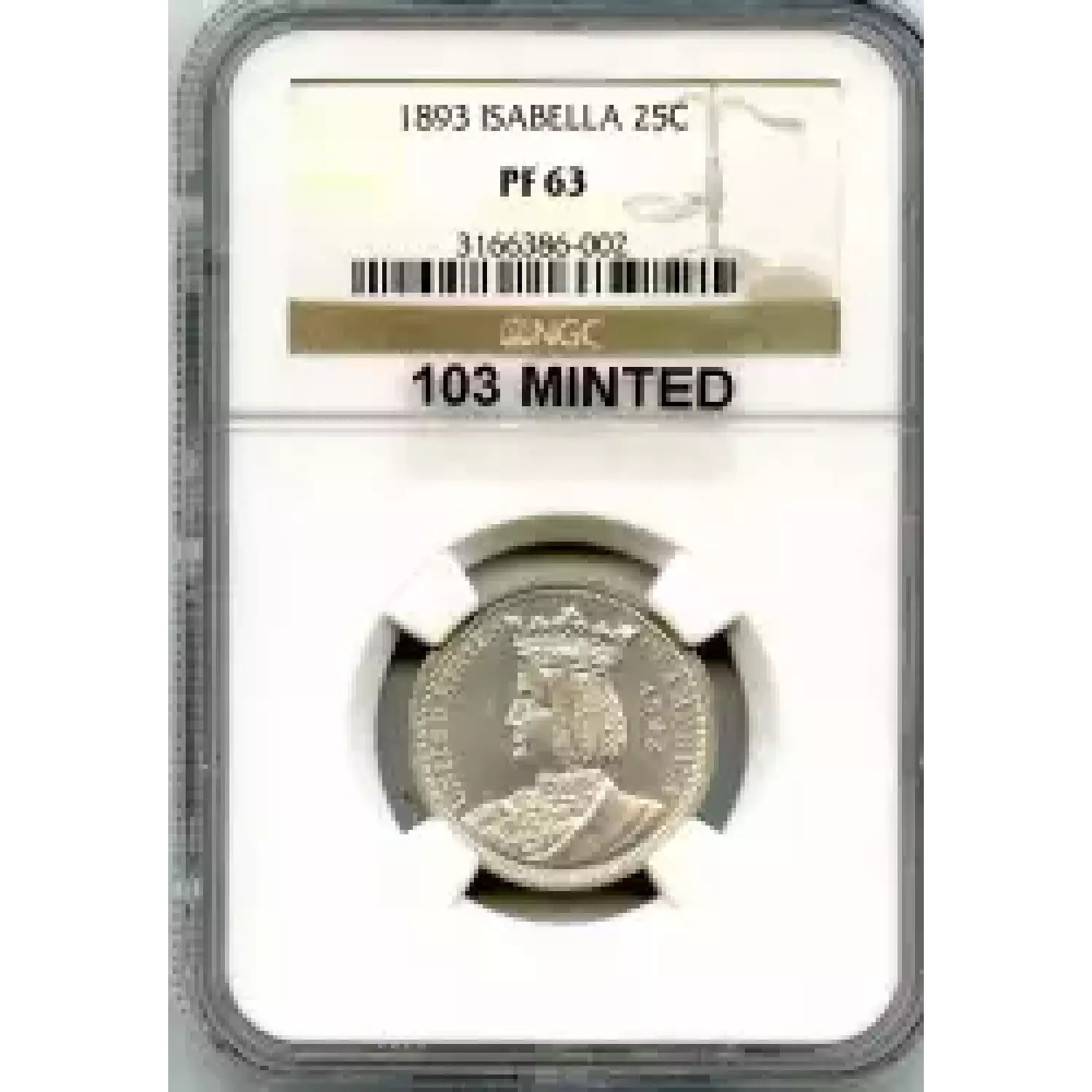 510380 | 1893-PF-63 Classic Commemorative World's Columbian Exposition, Isabella Quarter NGC PF-63 | NGC | PF-63 | Sold: 28/03/2017 | $4,750 |