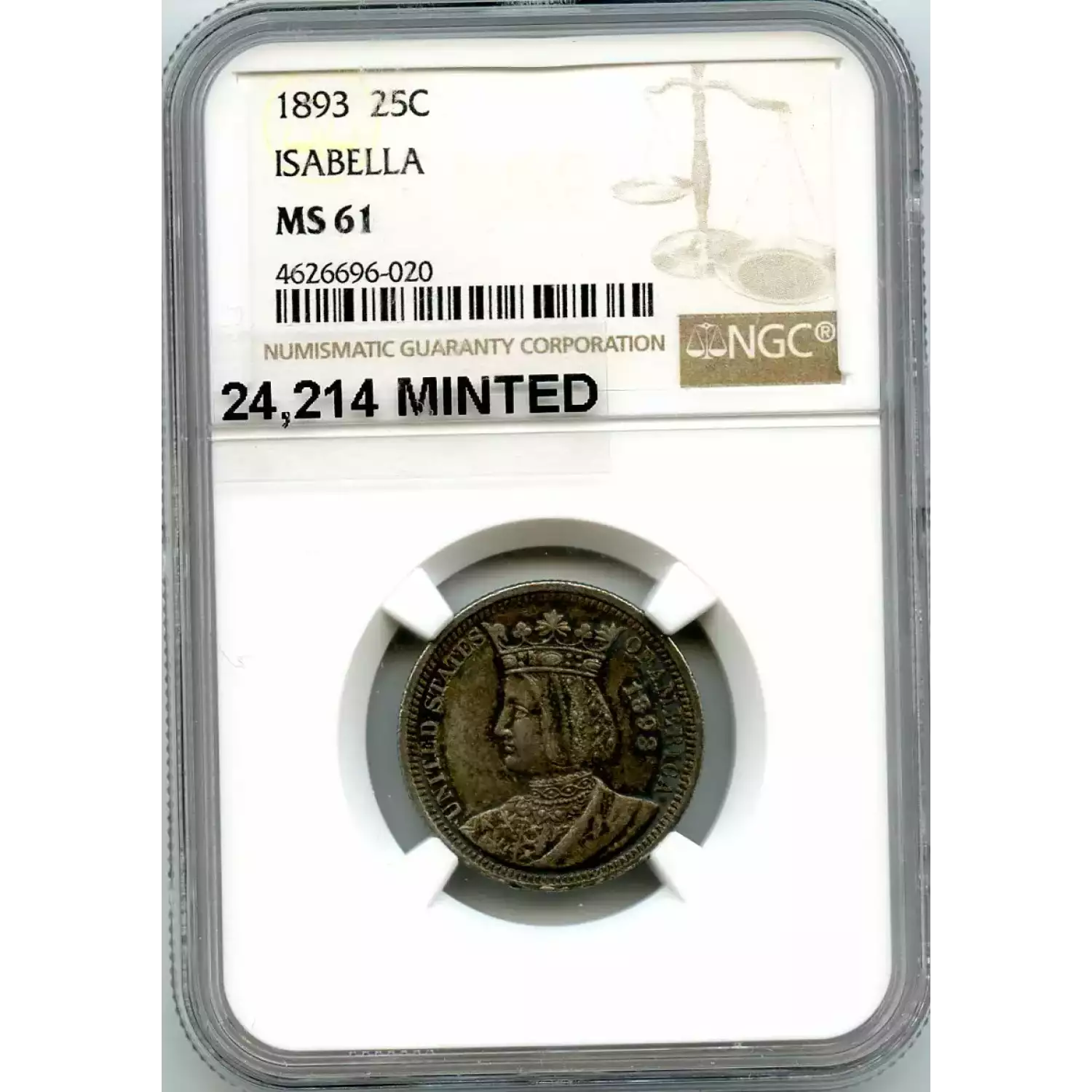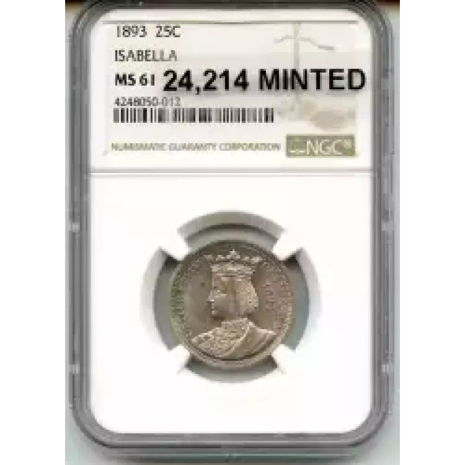 511798 | 1893-MS-61 Classic Commemorative World's Columbian Exposition, Isabella Quarter NGC MS-61 | NGC | MS-61 | Sold: 10/11/2018 | $295 |