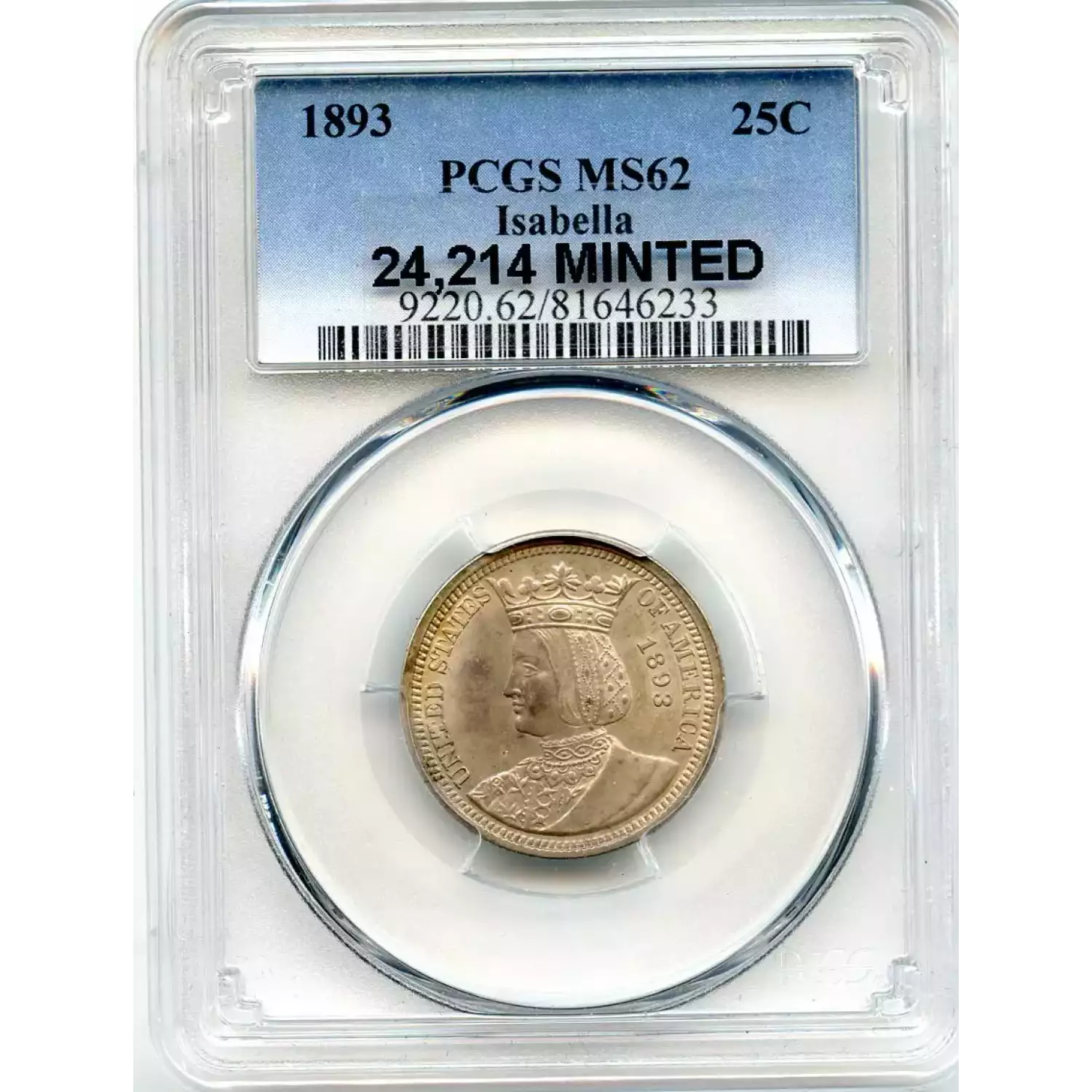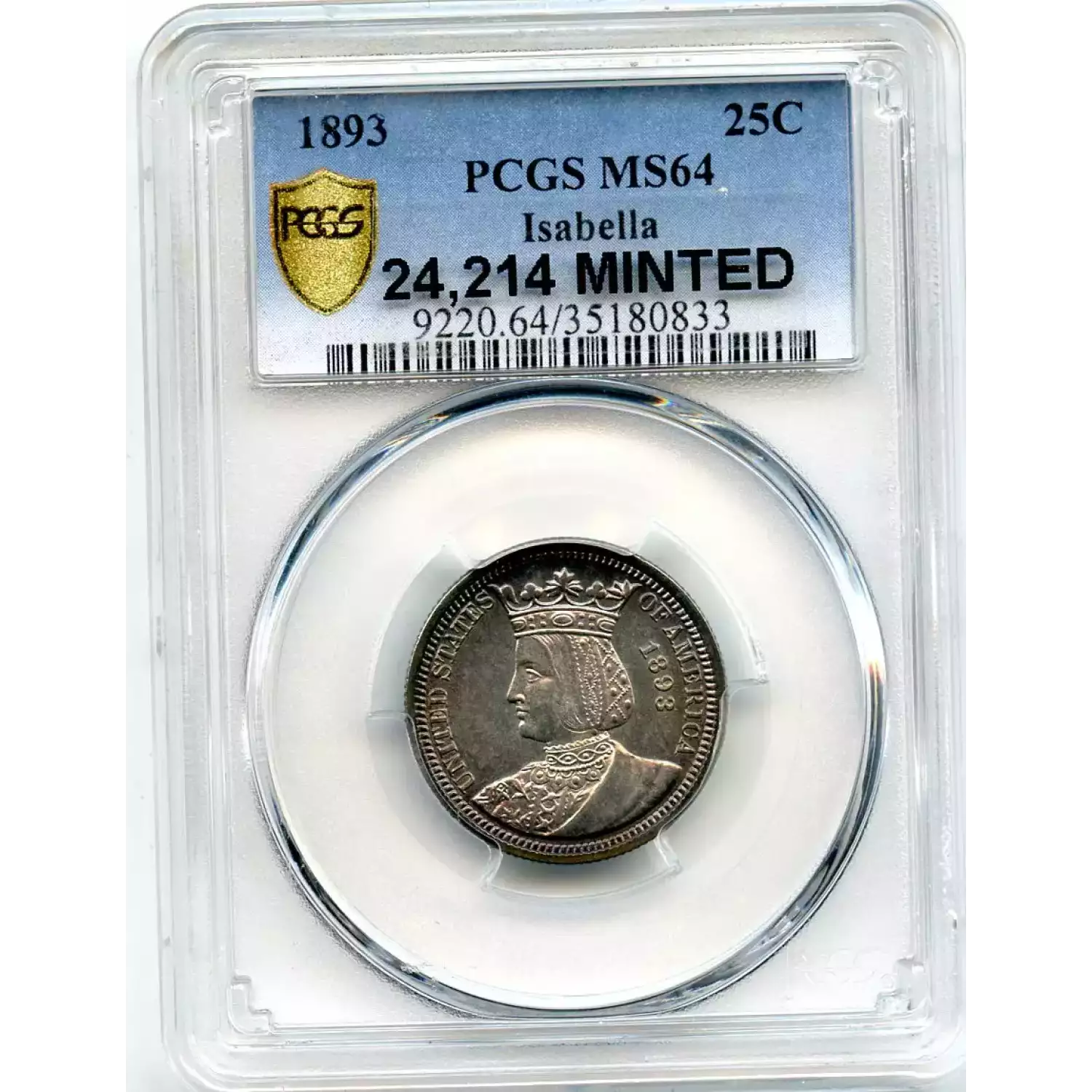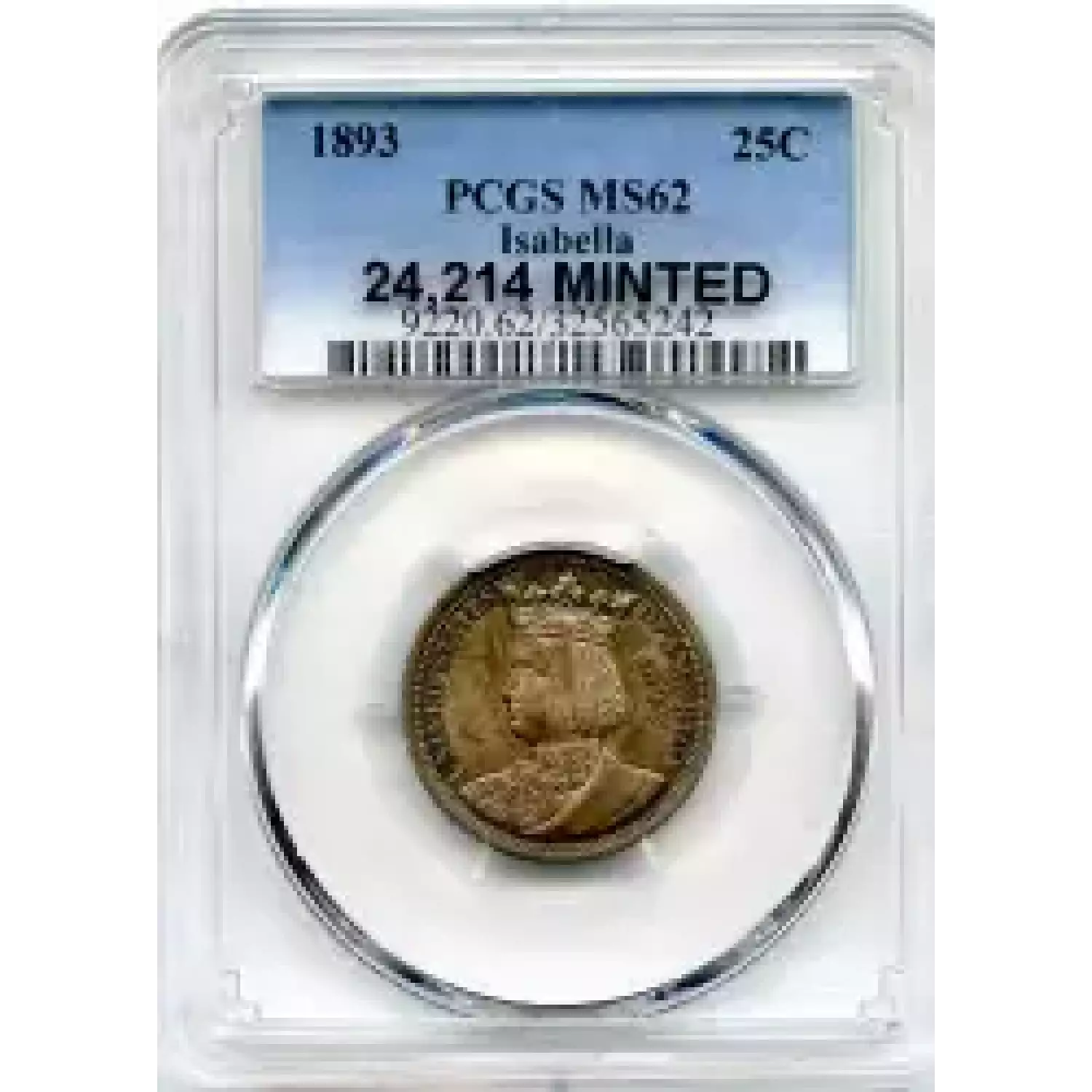 509701 | 1893-MS-62 Classic Commemorative World's Columbian Exposition, Isabella Quarter PCGS MS-62 | PCGS | MS-62 | Sold: 02/12/2019 | $384 |