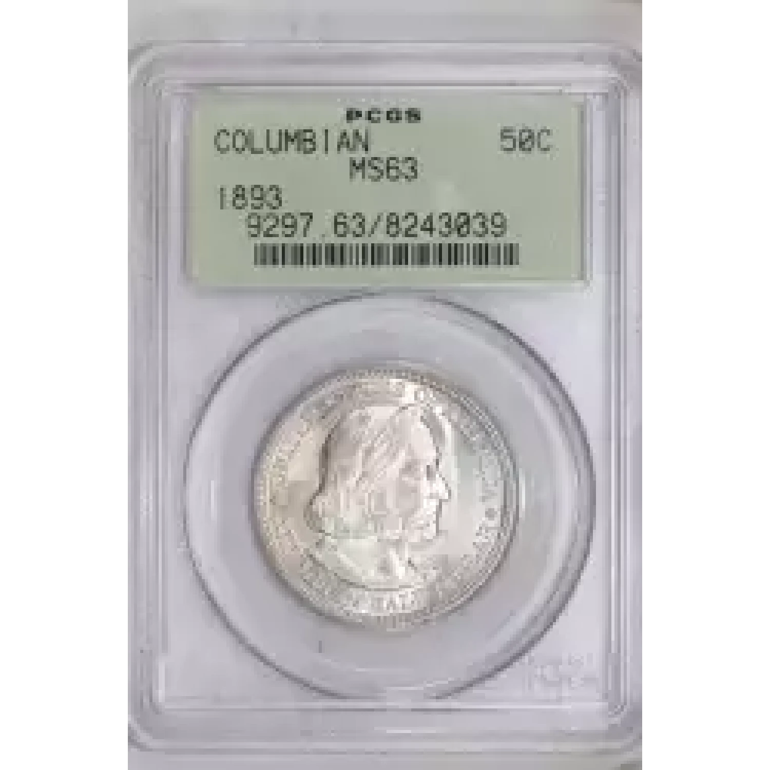 517390 | 1893 Classic Commemorative World's Columbian Exposition Half Dollar PCGS MS-62 Columbian | PCGS | MS-62 | Sold: 09/05/2023 | $85 |