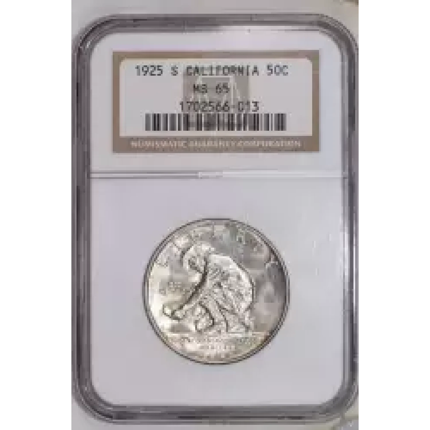 517477 | 1935-S Classic Commemorative California Pacific International Exposition PCGS MS-66 San Diego | PCGS | MS-66 | Sold: 27/04/2023 | $250 |