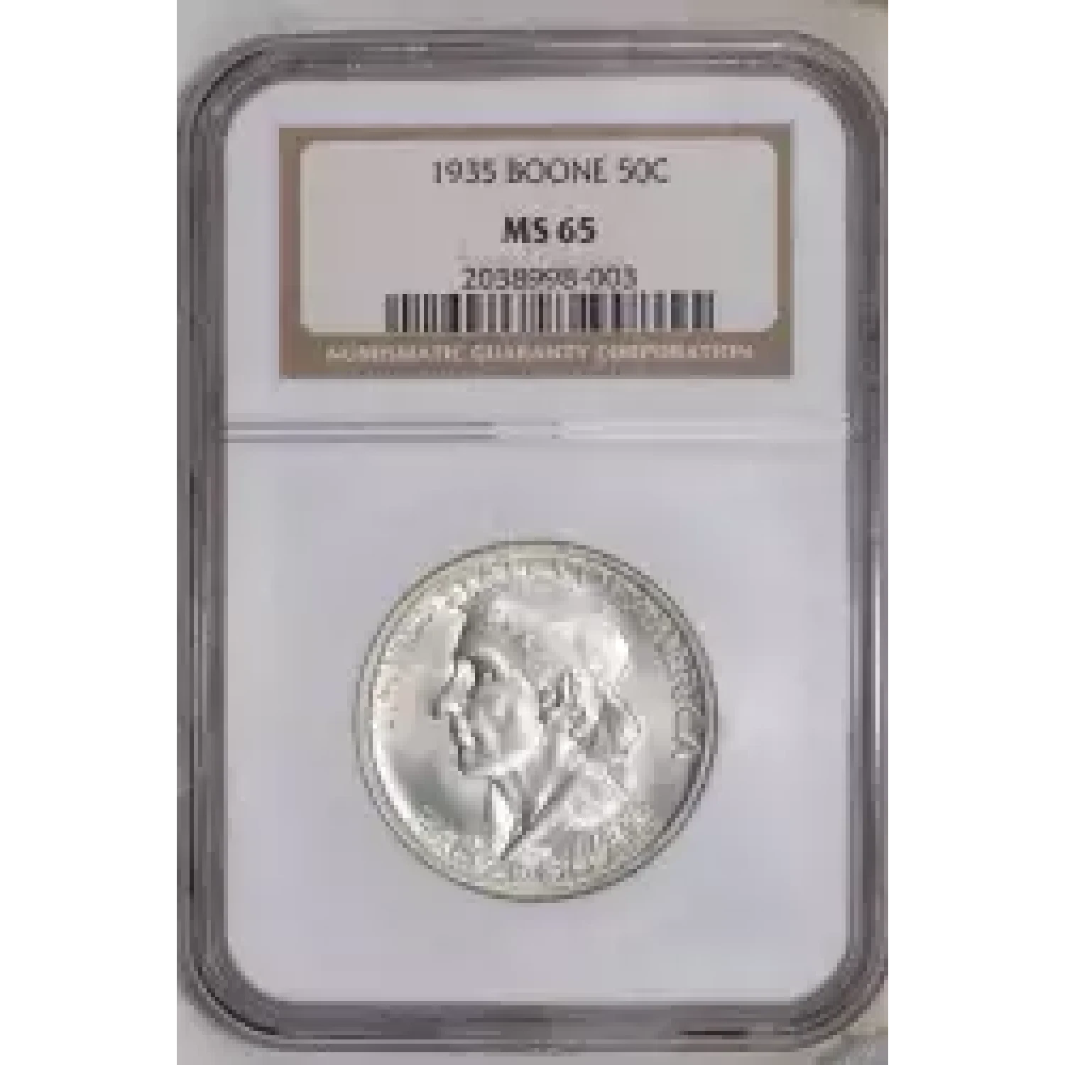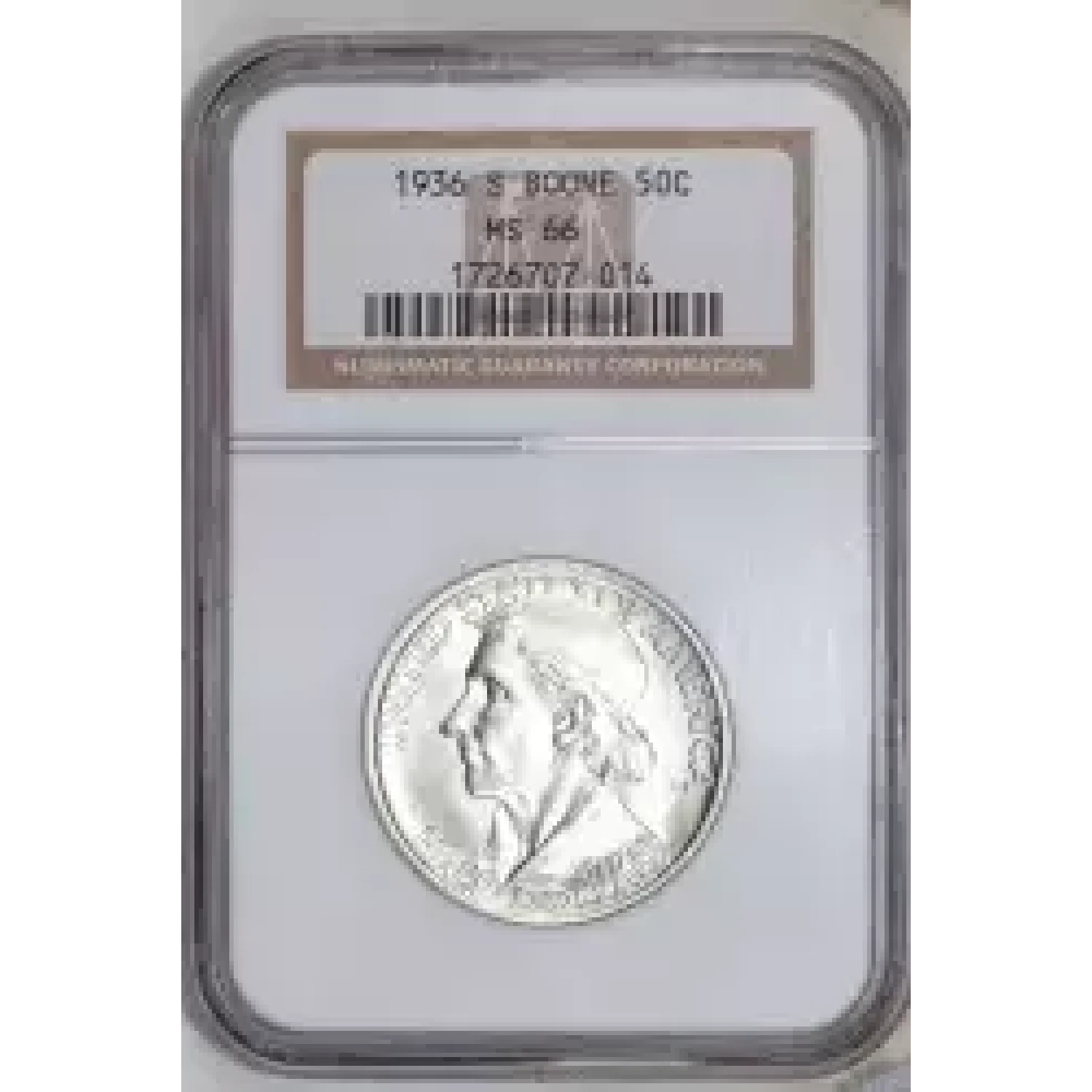 515533 | 1937 Classic Commemorative Daniel Boone Bicentennial NGC MS-65 BOONE | NGC | MS-65 | Sold: 14/11/2022 | $275 |