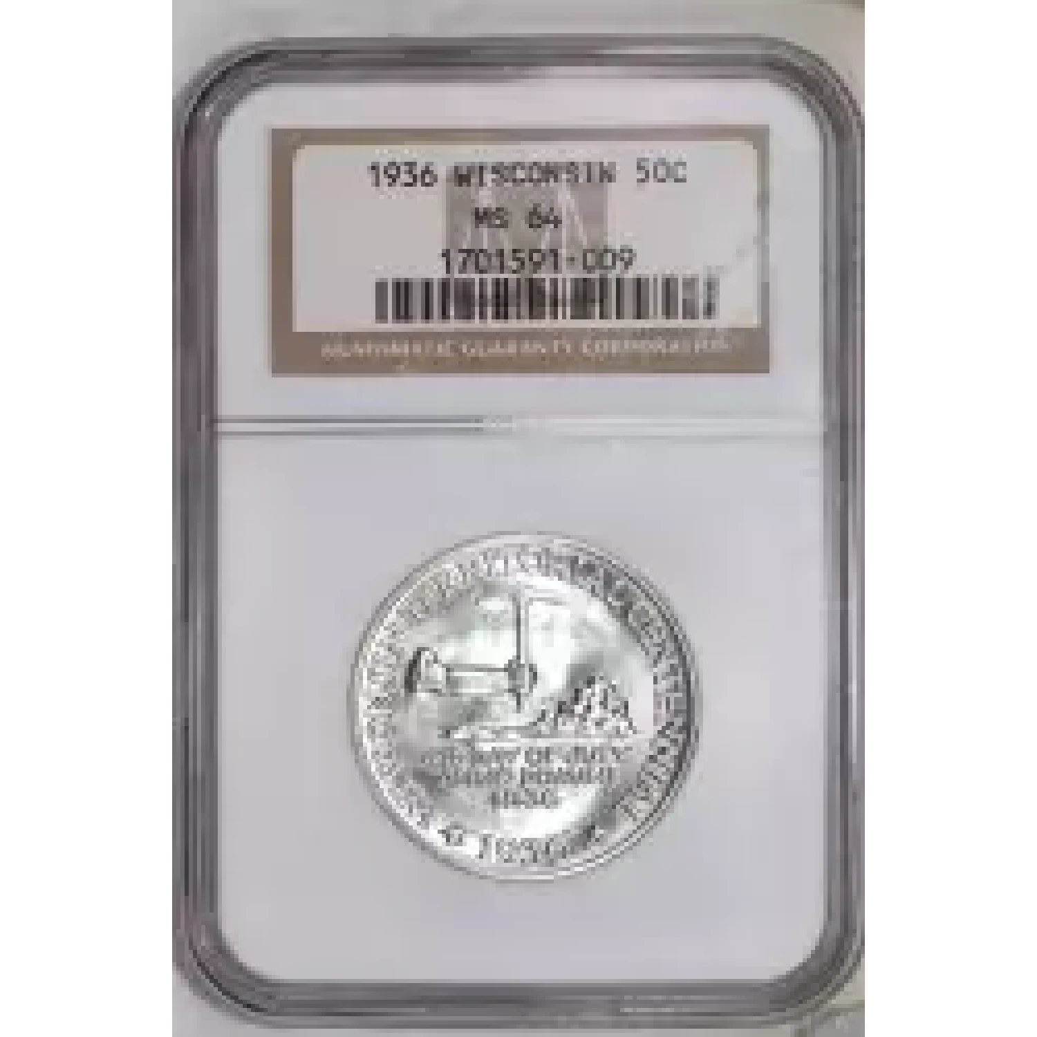 517383 | 1936 Classic Commemorative Bridgeport, Connecticut, Centennial PCGS MS-63 Bridgeport | PCGS | MS-63 | Sold: 23/03/2023 | $200 |