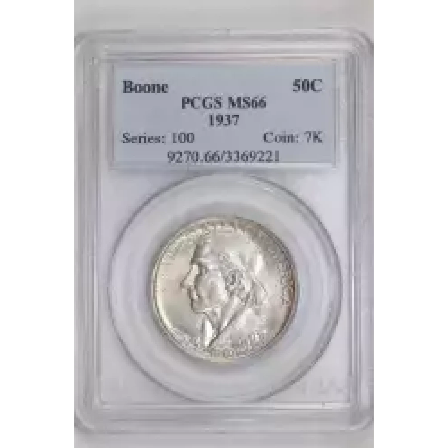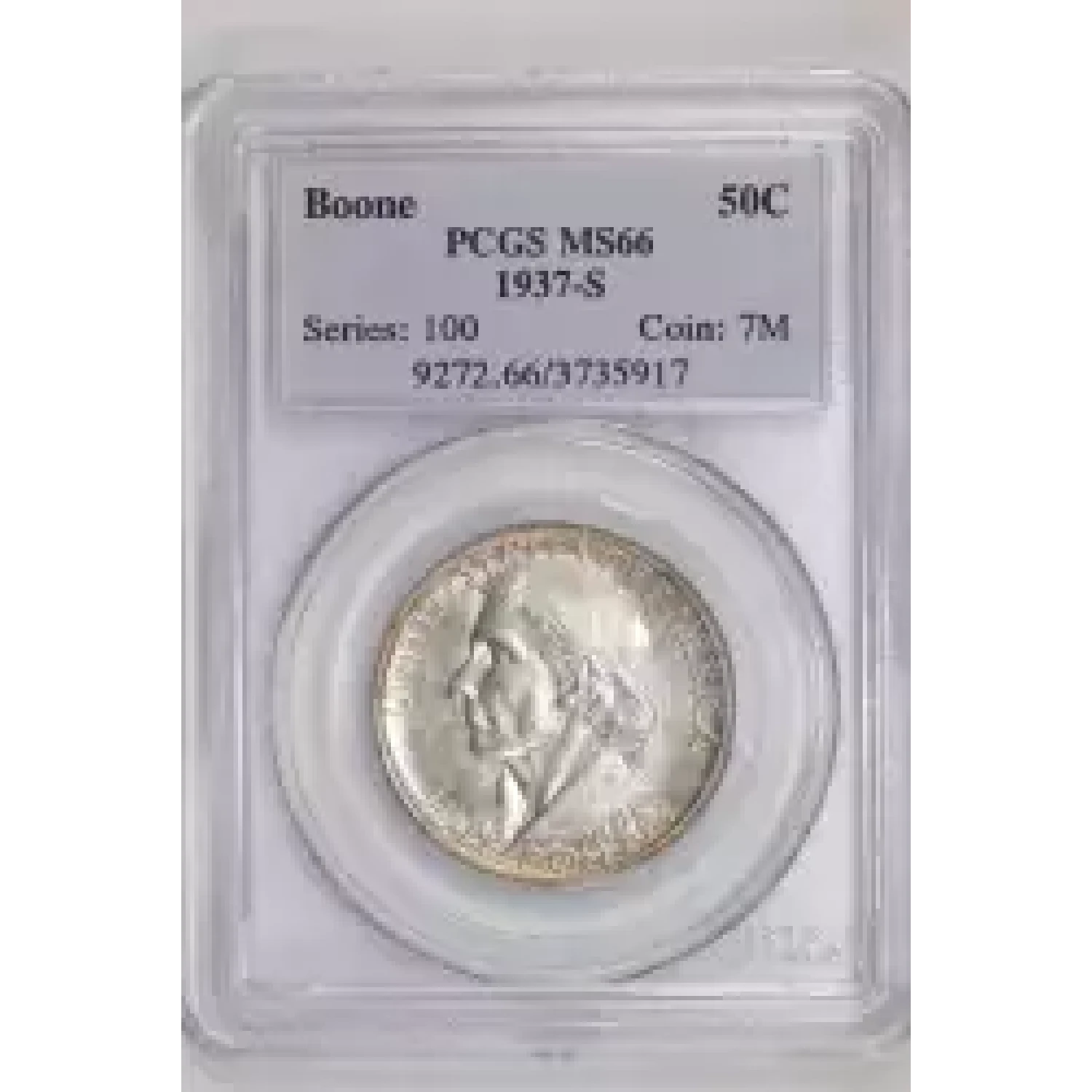 517378 | 1937-S Classic Commemorative Daniel Boone Bicentennial PCGS MS-66 Boone | PCGS | MS-66 | Sold: 04/08/2023 | $700 |