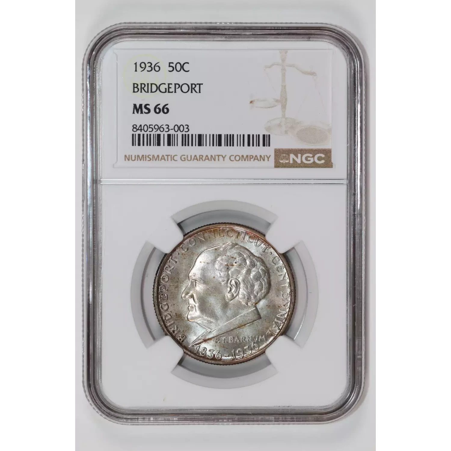 520544 | 1936 Classic Commemorative Bridgeport, Connecticut, Centennial PCGS MS-65 Bridgeport CAC | PCGS | MS-65 | Sold: 18/12/2023 | $315 |