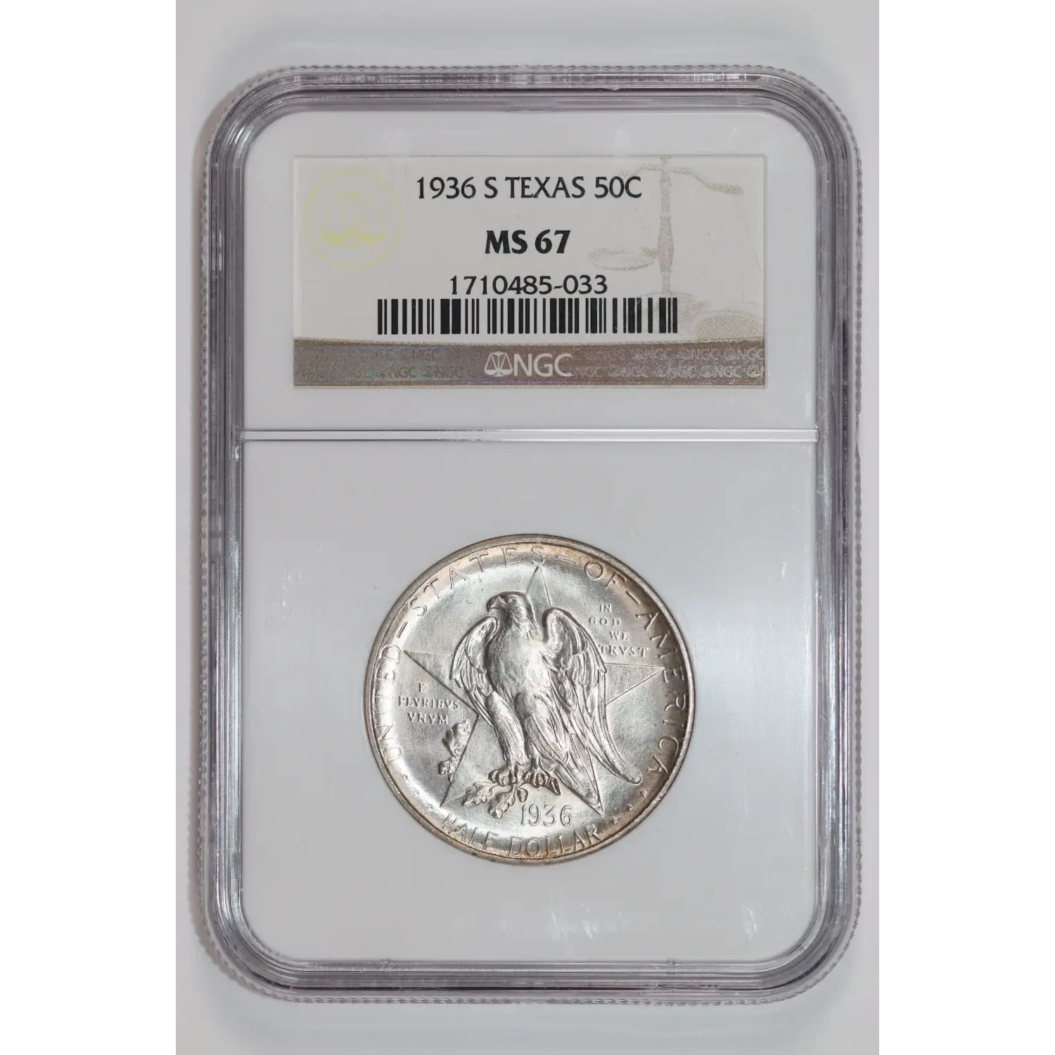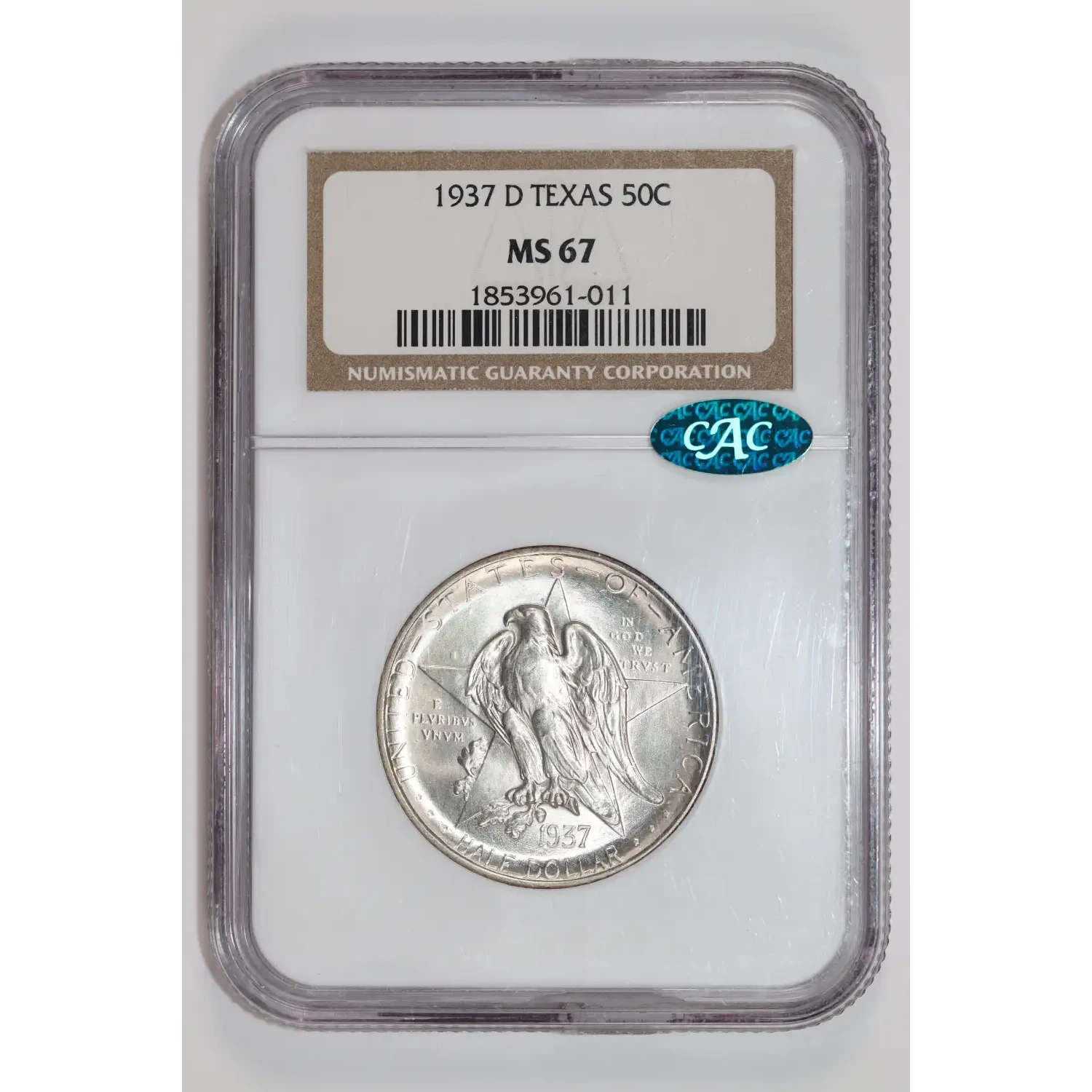 535565 | 1937 Classic Commemorative Texas Independence Centennial NGC MS-67 TEXAS CAC | NGC | MS-67 | Sold: 09/10/2025 | $1,050 |