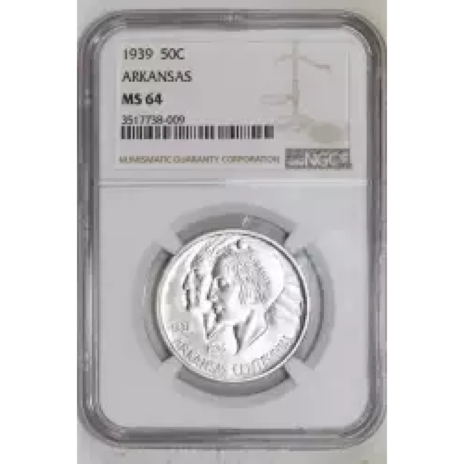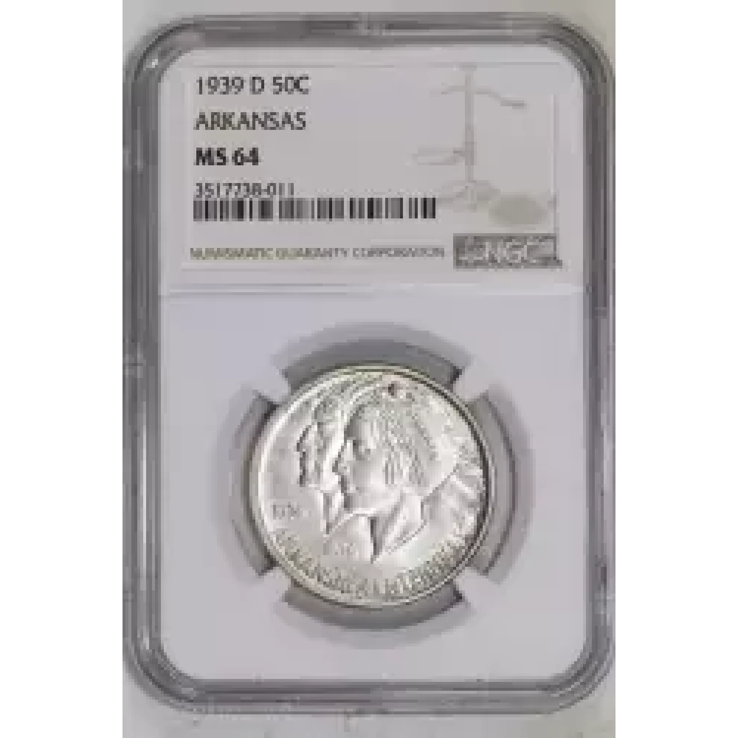 520686 | 1939 Classic Commemorative Arkansas Centennial NGC MS-64 ARKANSAS | NGC | MS-64 | Sold: 14/11/2023 | $450 |