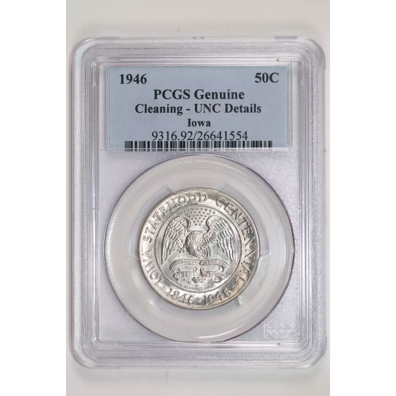 524544 | 1946 Classic Commemorative Iowa Centennial PCGS Genuine - UNC Details (92 - Cleaned) Iowa | PCGS | Genuine - UNC Details (92 - Cleaned) | Sold: 09/10/2025 | $115 |