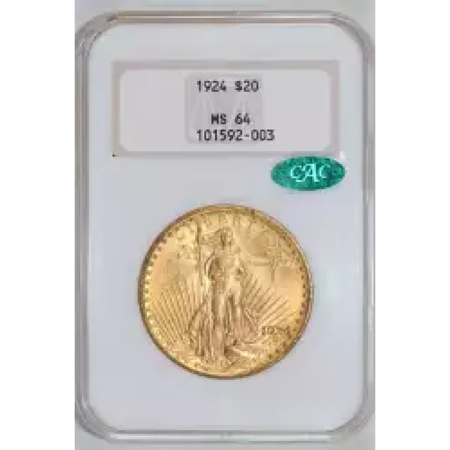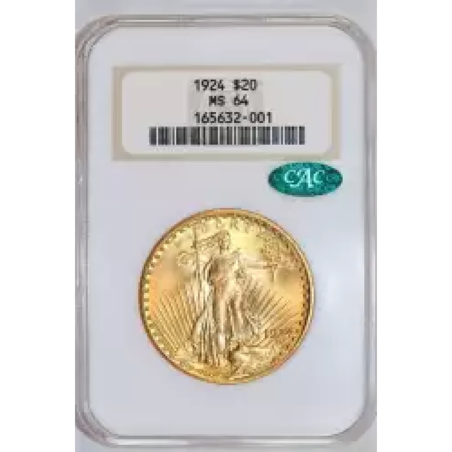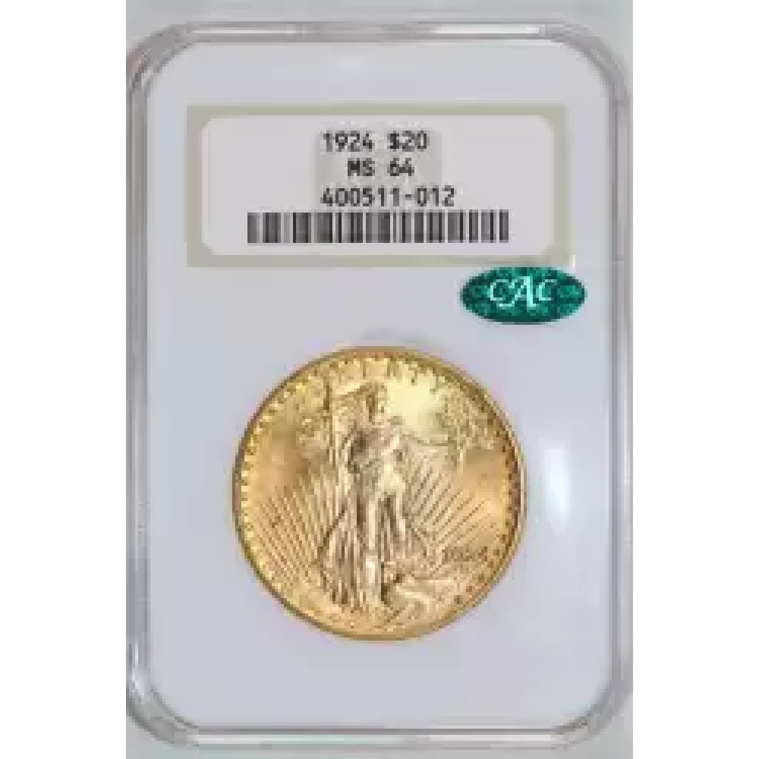 502780 | 1924 Double Eagles Saint Gaudens NGC MS-64 CAC | NGC | MS-64 | Sold: 18/07/2022 | $2,595 |