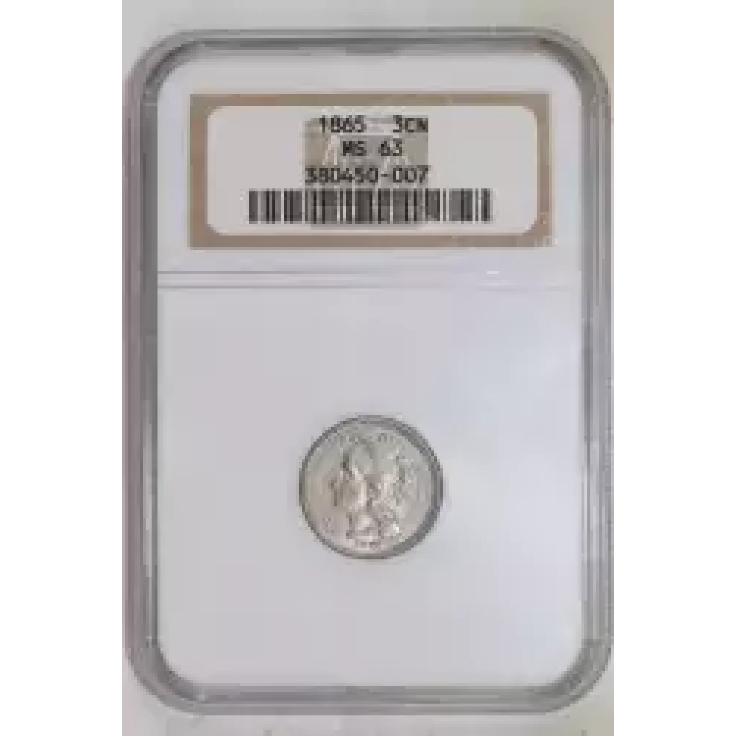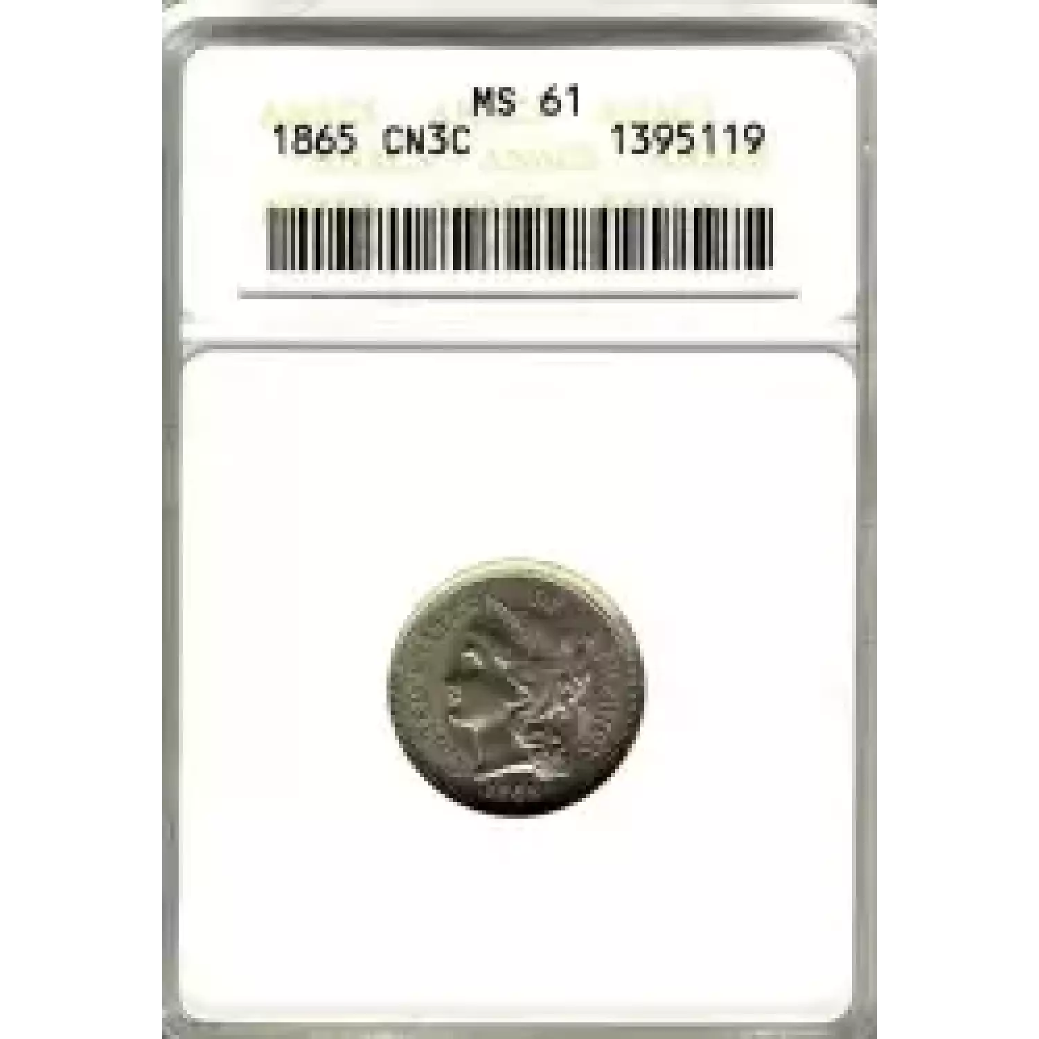 504068 | 1865-MS-62 Three Cent Pieces (Nickel) ANACS MS-62 | ANACS | MS-62 | Sold: 04/10/2008 | $100 |