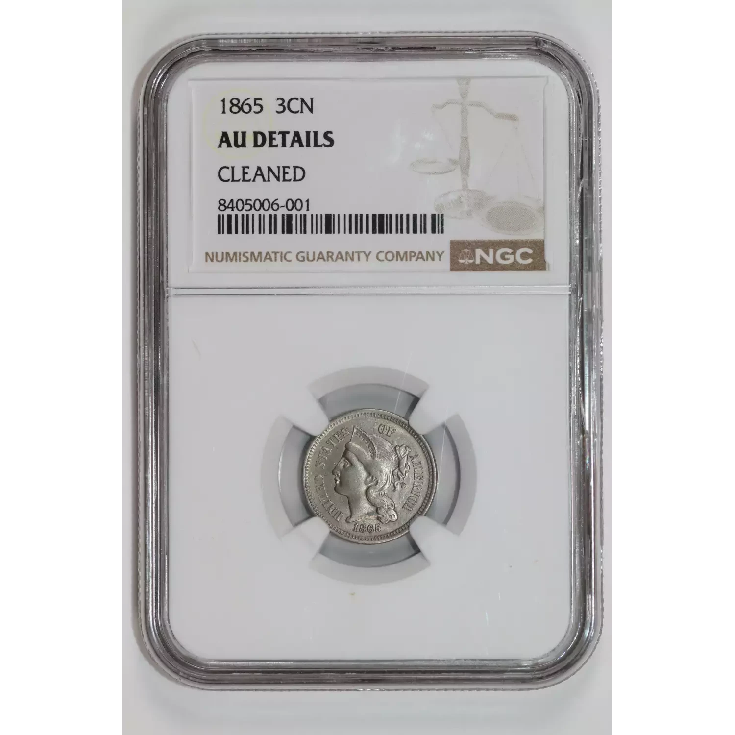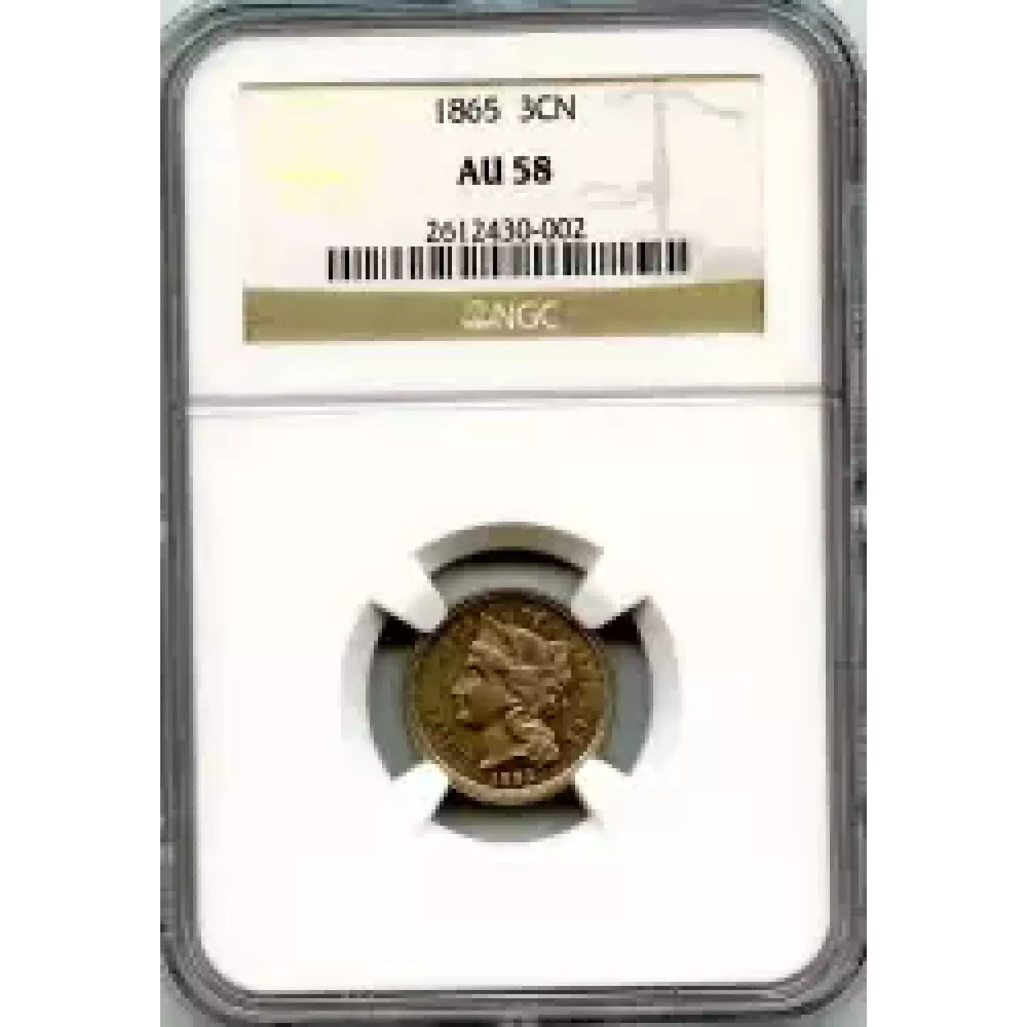 507890 | 1865-AU-58 Three Cent Pieces (Nickel) NGC AU-58 | NGC | AU-58 | Sold: 30/09/2014 | $100 |