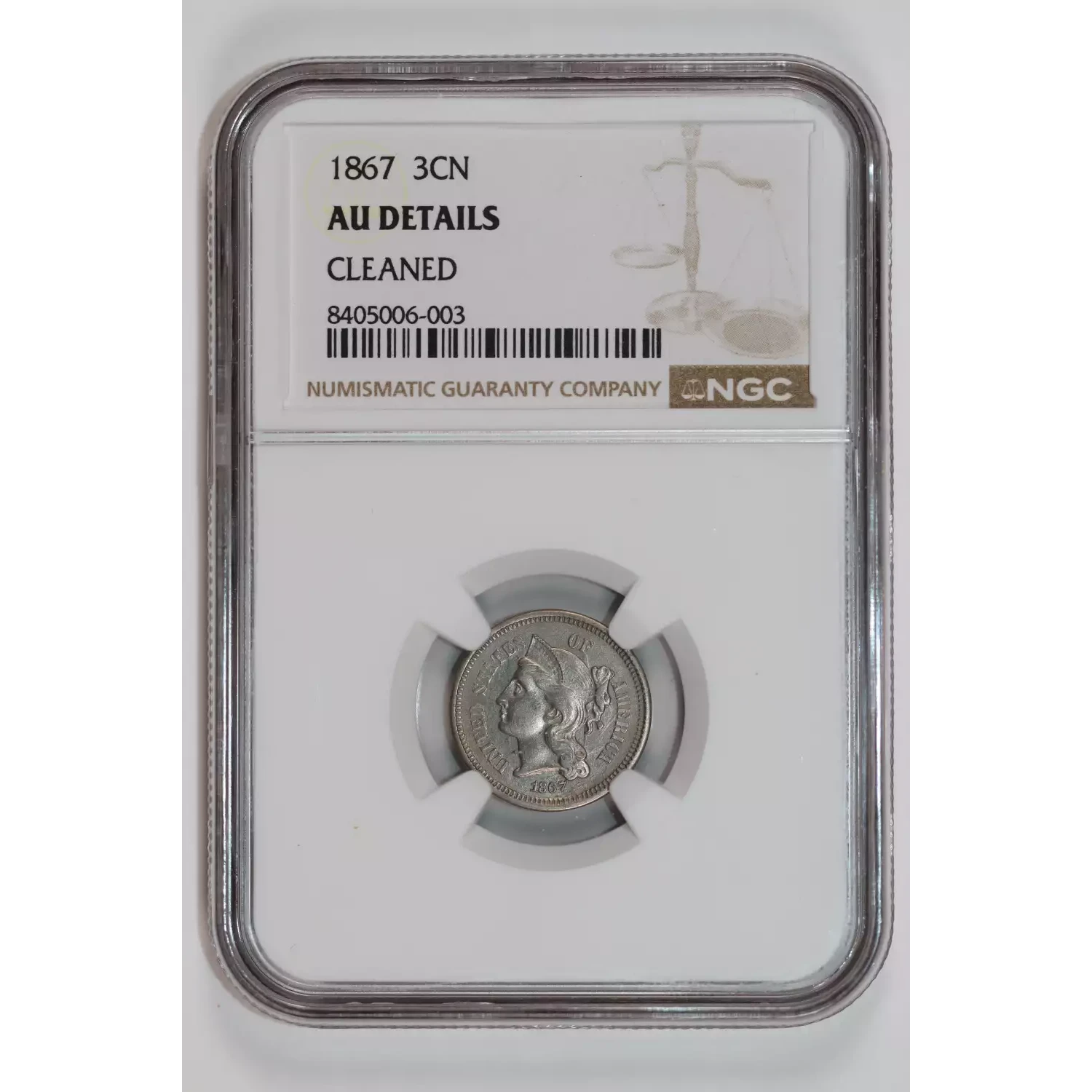 535389 | 1867 Three Cent Pieces (Nickel) NGC AU Details | NGC | AU Details | Sold: 09/10/2025 | $80 |