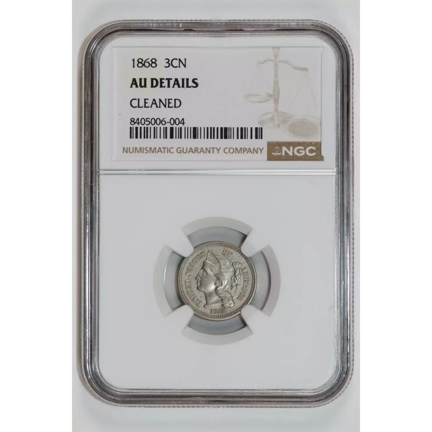 535390 | 1868 Three Cent Pieces (Nickel) NGC AU Details | NGC | AU Details | Sold: 09/10/2025 | $100 |